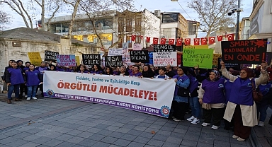"Evde, işte, sokakta: Şiddete, tacize, eşitsizliğe, sömürüye karşı ses yükselt!"