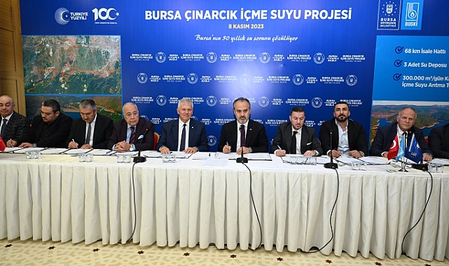 Bursa’ya 2060 yılına kadar susuzluk yaşatmayacak olan 'Bursa Çınarcık İçme Suyu Projesi'nin herhangi bir aksamaya uğramadan, kısa zamanda tamamlanması için ihaleyi kazanan 9 ayrı firma ile sözleşme imzalandı.