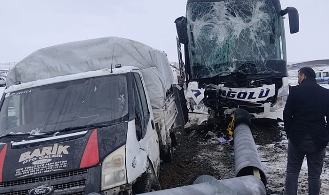 Ağrı'nın Hamur ilçesinde yolcu otobüsü ile kamyonet çarpıştı. Meydana gelen kazada 11 kişi yaralandı.