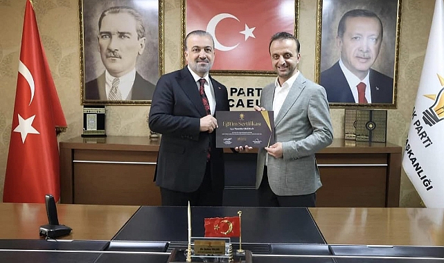 AK Parti Körfez İlçe Başkanı Nurettin Okudan Sertifikasını İl Başkanı Dr. Şahin Talus'tan Aldı