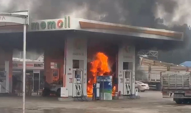 Akaryakıt istasyonunda bir otomobil alev aldı