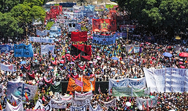 Arjantin'de Genel İş Konfederasyonu (CGT) başta olmak üzere, çeşitli sendikaların öncülüğünde düzenlenen "ulusal grev" protestoları, binlerce kişinin katılımıyla başkent Buenos Aires'te gerçekleşti.Ulaşım, sağlık ve kamu yönetimi hizmetlerinde ciddi aksamaların yaşandığı, bazı uluslararası uçuşların askıya alındığı bildirildi.Sendikalar, Devlet Başkanı Javier Milei'nin hükümetinin yeni ekonomi ve sosyal önlemler adı altında grev hakkını yok etmeye çalıştığını iddia ediyor. Bu bağlamda Kongre'ye gönderilen torba yasanın işçi hakları açısından tehlike oluşturduğunu savunan sendikalar, hükümetin bu politikalarını protesto etmek ve reddetmek amacıyla ulusal greve başvurdu. (İLKHA)