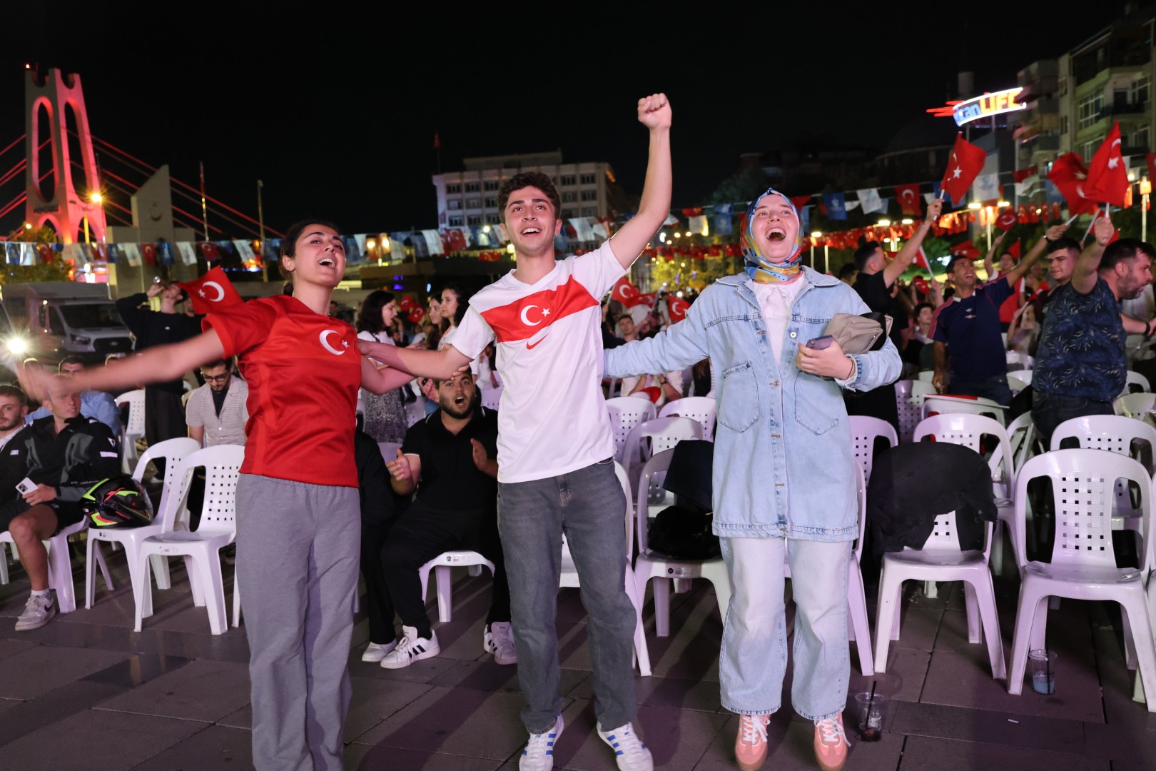 GALİBİYET COŞKUSU MEYDANDA YAŞANDIKocaeli Büyükşehir Belediyesi'nin organizasyonuyla İzmit Kent Meydanı, galibiyet coşkusuna ev sahipliği yaptı. 12 Dev Adam, EuroBasket 2025 yarı finalinde Yunanistan'ı 94-68 yenerek 24 yıl aradan sonra EuroBasket’te finale yükseldi. Büyükşehir Belediyesi tarafından kurulan dev ekranda millilerimizin yarı finalde gösterdiği üstün mücadele binlerce Kocaelili tarafından büyük bir heyecanla izlendi. Saatler öncesinden hazırlanan meydan sporseverler tarafından dolduruldu ve Türk Bayrakları eşliğinde milli birlik ve beraberlik duyguları en üst düzeyde yaşandı. MİLLİ TAKIM İÇİN TEK YÜREK OLDUKEllerinde Türk bayraklarıyla meydanı dolduran her yaştan vatandaş, milli takımın her sayısında tezahüratlarla coşkuyu zirveye taşıdı. Kocaeli Büyükşehir Belediyesi’nin organizasyonuyla oluşan bu atmosferde kent tek yürek olup, milli birlik ve beraberliğin en güzel örneklerinden birini sergiledi. EuroBasket 2025’te finale yükselen A Milli Erkek Basketbol Takımımız, Almanya ile 14 Eylül Pazar günü şampiyonluk mücadelesine çıkacak.