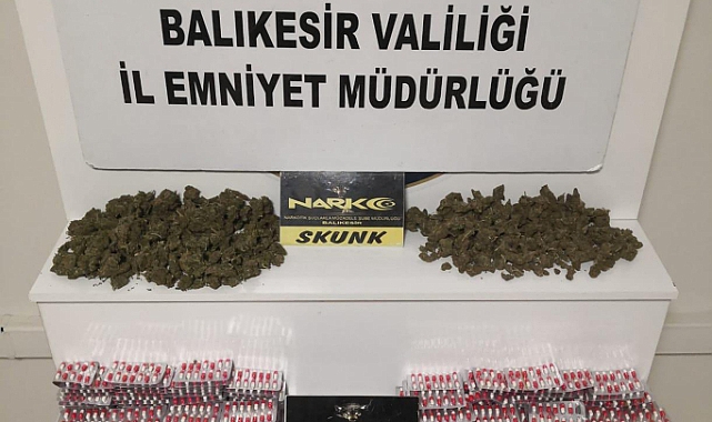 Balıkesir İl Emniyet Müdürlüğü Narkotik Suçlarla Mücadele Şube Müdürlüğü ekipleri, il girişinde durdurdukları aracın çeşitli bölmelerine gizlenmiş halde 1 kilogram 78 gram skunk esrar maddesi, 4 bin 158 adet sentetik ecza hap, 45 gram taş kokain, suçtan elde edildiği değerlendirilen 11 bin 25 TL ve 400 dolar ele geçirdi.Olayla ilgili 2 şüpheli gözaltına alındı.Olayla ilgili inceleme devam ediyor. (İLKHA)