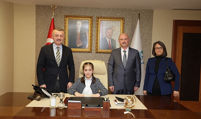 Kocaeli Büyükşehir Belediye Başkanı Tahir Büyükakın, 23 Nisan Ulusal Egemenlik ve Çocuk Bayramı dolayısıyla başkanlık makamını Türk Pirelli İlköğretim Okulu 4. sınıf öğrencisi Azranur Yayla’ya devretti. Yayla, Başkan Büyükakın’a 23 Nisan Ulusal Egemenlik ve Çocuk Bayramı dolayısıyla koltuğunu verdiği için teşekkür etti. Başkan Büyükakın, doktor ya da öğretmen olmak istediğini belirten Azranur’a “İkisi de çok güzel meslekler. Biri hayat kurtarıyor diğeri de insan kurtarıyor” dedi.