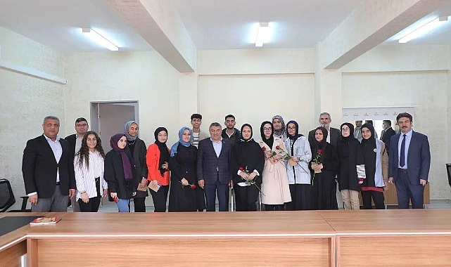 Daha sonra ç lise öğrencileri ile bir araya gelen Başkan Şayir, eğitimin verdikleri destekler hakkında öğrencilere bilgiler veriyor.