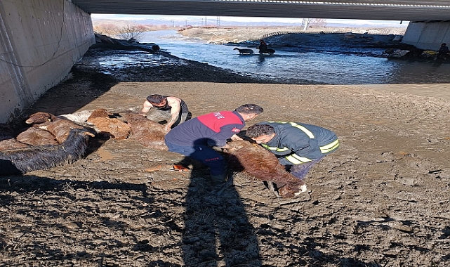Bataklığa saplanan hayvanlar telef oldu