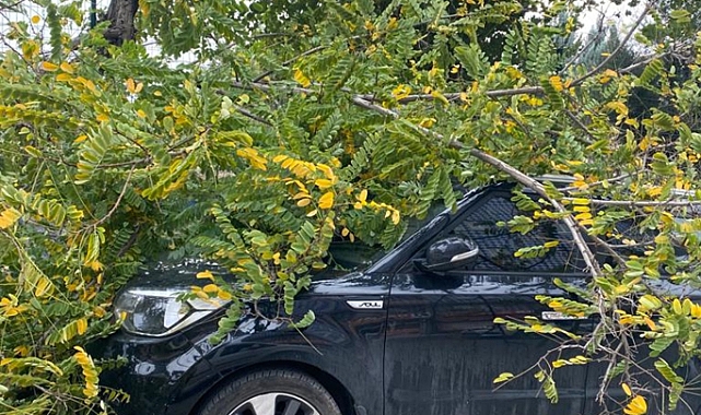 Batman'da şiddetli rüzgarın devirdiği ağaç, park halindeki aracın üstüne düştü