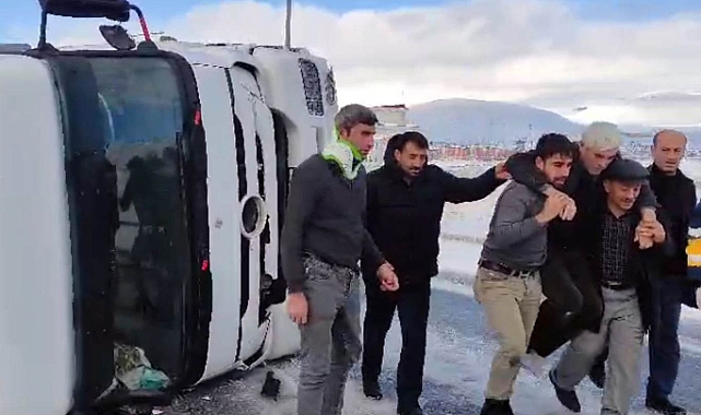 Kar yağışı nedeniyle Bitlis'in Tatvan ilçesinde buzlanmanın oluştuğu yolda yem yüklü tır takla attı. Kazada birliğine giden biri asker 3 kişi yaralandı.