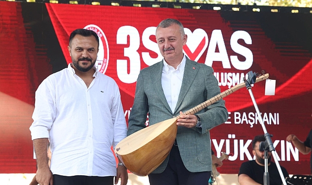 Seka Kamp alanında gardaşlık buluşmasına katılan vatandaşlarla bir araya gelen Başkan Büyükakın’a protokol konuşmalarından sonra Sivaslılar Kültür ve Dayanışma Dernek Başkanı Kadir Zortaş tarafından bağlama hediye edildi. Ayrıca buluşmada bin 580 kilo Sivas Köftesi pişirilerek ikram edildi.
