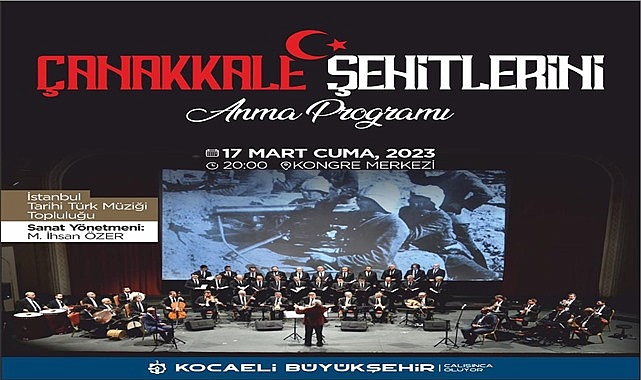 Kocaeli Büyükşehir Belediyesi, bağımsızlığımızın sembolü olan 18 Mart Çanakkale Zaferi’nin 108. yıldönümü dolayısıyla anma programı düzenleyecek. Çanakkale Şehitlerini Anma Programı’nda İstanbul Tarihi Türk Müziği Topluluğu, büyük destanın seyrini anlatan bir repertuar sunacak.