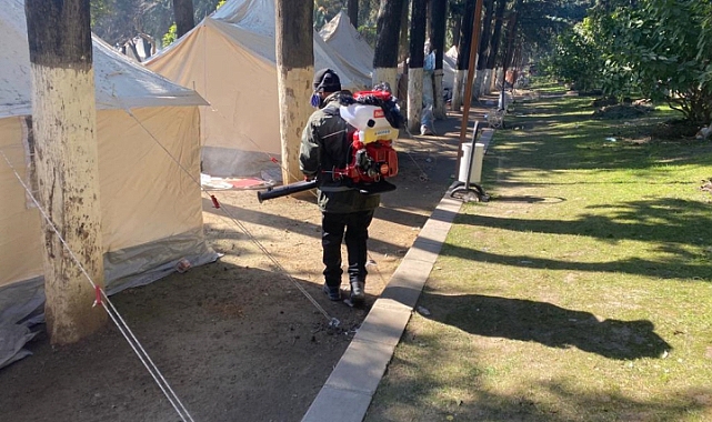 Büyükşehir Vektörle Birimi, vektörle mücadele çalışmaları kapsamında kemirgen mücadelesi ve dezenfeksiyon çalışmaları için 5 araç 13 personelin yanı sıra cihaz ve ekipmanlarla deprem bölgesine gitti. Ekipler, çadır kentler ve toplanma alanlarıyla tuvaletler başta olmak üzere çok sayıda noktada dezenfekte çalışması yapıyor.