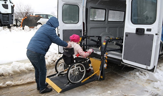 Zorlu kış şartlarında tekerlekli sandalye kullanan engelli bireylerin ev dışında olan zorunlu ihtiyaçları ise yine Büyükşehir’in Engelsiz Taksi hizmeti sayesinde karşılanıyor. Karamürsel Karapınar köyünde ikamet eden Elif Derya da ekipler tarafından alınarak ihtiyaçları karşılandı.