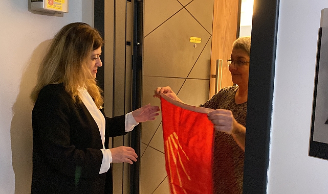 CHP Kocaeli Milletvekili adayları Serap Çakır ve Nail Çiler, Darıca’da esnaf ve ev ziyaretlerinde bulundu. Emek Mahallesi 112 Evler de çat kapı girilen bir evde, Atatürkçü bir teyze Serap Çakır’a kocasından yadigar, 36 yıl sakladığı CHP bayrağını hediye etti.