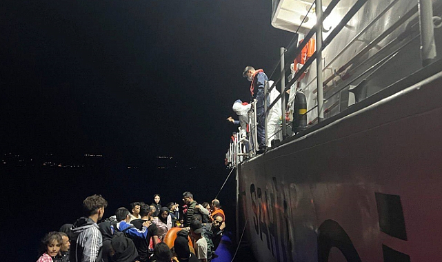 Çanakkale'nin Ayvacık ilçesi açıklarında Sahil Güvenlik Komutanlığı ekipleri tarafından lastik bot içinde 54 kaçak göçmen yakalandı.