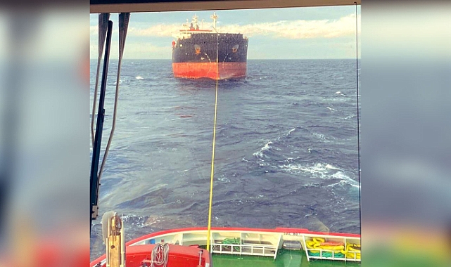 Çanakkale açıklarında makineleri arızalanan Panama bayraklı tanker, römorkör refakatinde Bozcaada Demir Sahası'na götürüldü.