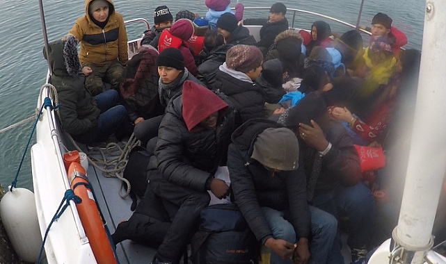 Çanakkale'nin Ayvacık ilçesi açıklarında, bir lastik botta 14'ü çocuk toplamda 42 Afganistan uyruklu düzensiz göçmen yakalandı.
