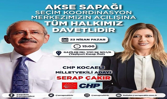 SERAP ÇAKIR’IN EVİSamsun nüfusun kayıtlı olan, Gebze’de doğup, büyüyen CHP’nin Milletvekili adayı olan Serap Çakır, çocukluğunun, gençliğinin geçtiği, tüm ailesinin ve arkadaşlarının yaşadığı semt olan Akse Sapağı’nda açılacak SKM nedeni ile oldukça heyecanlı. 2019 yerel seçimlerinde Gebze’den bağımsız belediye başkan adayı olduğu dönemde de karargahını bu bölgeye kuran Çakır, bu kez Millet İttifakı’nın adayı olarak kendi semtinde SKM açacak ve seçim çalışması yapacak. Gaziler Mahallesi 1701 Sokak’ta bulunan Yeşilyurt Kasap önünde, devam eden metro çalışmasının tam karşısında ki SKM açılışına katılımın yoğun olması bekleniyor.ÇOCUKLAR DA UNUTULMADIRamazan Bayramı ile 23 Nisan Ulusal Egemenlik ve Çocuk Bayramı’nın bir arada kutlanacağı Pazar günü SKM açılışına hazırlanan CHP’de, Milletvekili adayı Serap Çakır, tüm Gebzelileri açılışa davet ederek, “başı rahmet, ortası mağfiret, sonu cehennemden azabından kurtuluş olan Ramazan ayını hep birlikte idrak ettik, bizleri bayrama kavuşturan Allah’ımıza hamd olsun. Hep birlikte nice bayramlar kutlamayı Rabbim bizlere nasip etsin. Bu Ramazan Bayramı ve Çocuk Bayramı’nı birlikte kutluyoruz, İnşallah 14 Mayıs’ta da demokrasi bayramımızı birlikte kutlayacağız. Ulu Önder Mustafa Kemal Atatürk’ün Gazi Meclisimizin açılışı olan büyük günü çocuklara armağan ettiği 23 Nisan’ı da yine aynı gün kutluyoruz. Baharları getirmek için söz verdiğimiz, daha güzel bir gelecek yaşatmak için yola çıktığımız çocuklarımızı da misafir edeceğimiz SKM açılışımız da tüm hemşerilerimiz, Gebzeli dostlarımızı ve tüm dava arkadaşlarımızı yanımızda görmek istiyoruz” dedi.