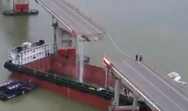 Çin'in güneyindeki Guangzhou kentinde bir geminin, bir köprünün ayağına çarparak köprünün kırılmasına neden olduğu kazada 5 kişi hayatını kaybetti.