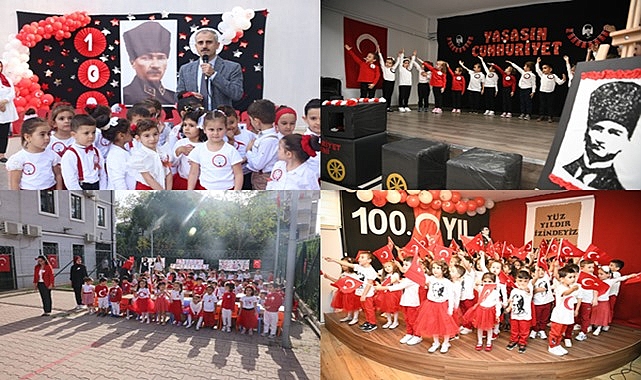 Çayırova Belediyesi’nin Çocuk Kulüpleri’nde eğitim alan minik Çayırovalılar, hazırladıkları özel gösterilerle Cumhuriyetimizin 100. yılını doyasıya kutladı. İlçedeki çocuk kulüplerinde eğitim alan minik yürekler, 29 Ekim Cumhuriyet Bayramı ve Cumhuriyet’in 100. Yılı’na özel düzenledikleri etkinlikleri, izleyenlerin beğenisine sundu. Çayırova Belediye Başkanı Bünyamin Çiftçi, öğrencilerin ve velilerin heyecanına ortak oldu. Hazırlanan programlar izleyenlerden tam not alırken, Çayırovalı çocukların 29 Ekim Cumhuriyet Bayramı’nda sergilediği performanslar büyük alkış aldı.