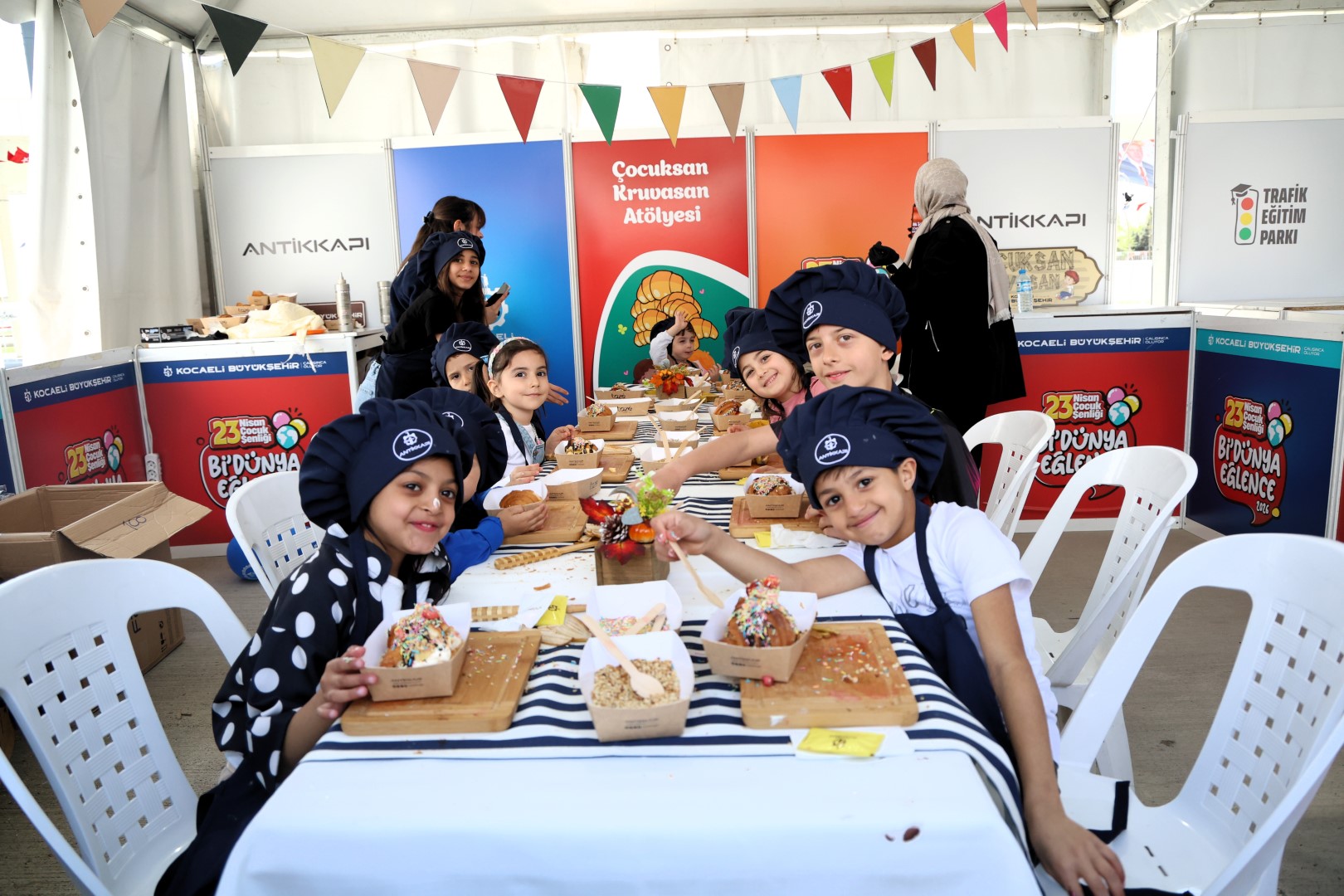 EĞLENİP ÖĞRENDİLERKocaeli Büyükşehir Belediyesi’nin 23 Nisan Çocuk Şenliği kapsamında İzmit Milli İrade Meydanı’nda kurduğu etkinlik alanı, hafta sonu dolup taşıyor. Büyükşehir’in çocuklara hem eğlence hem de deneyim kazandıran uygulamaları arasında yer alan itfaiye parkuru ise miniklerin en çok ilgi gösterdiği alanlardan biri oldu. Küçük kahramanlar parkurda görev alırken ortaya renkli ve heyecan dolu görüntüler çıktı. PARKURDA HEYECAN DORUKTAKocaeli Büyükşehir Belediyesi İtfaiye ekipleri tarafından hazırlanan özel parkur, gün boyunca çocukların en çok vakit geçirmek istediği alanlardan biri oldu. Farklı etaplardan oluşan parkurda minikler; denge, hız ve dikkat gerektiren görevleri büyük bir heyecanla tamamladı. KRUVASAN YAPIP YEDİLEREğlenceyle öğrenmenin bir araya geldiği parkurda çocuklar, yangınla mücadeleye dair temel becerileri deneyimleyerek öğrendi. Her etabı başarıyla geçen minikler kendilerini gerçek birer itfaiyeci gibi hissederken, ortaya çıkan görüntüler şenliğin en heyecanlı anları arasında yer aldı. Yine etkinlik alanında bulunan Kruvasan Süsleme Atölyesi’nde ise çocuklar kendi kruvasanlarını ortaya çıkardı. Kendi keyiflerine ve zevklerine göre kruvasan tasarlayan minikler, daha sonra onları afiyetle yedi.