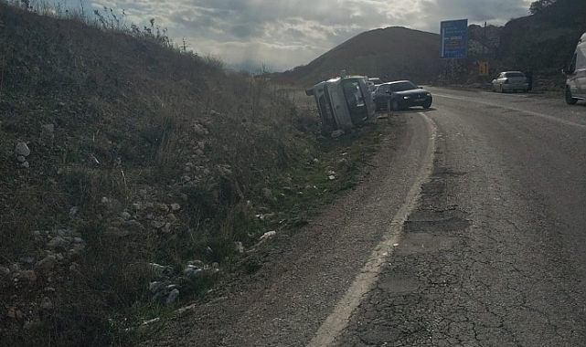 Devrilen araçtaki 2 kişi yaralandı