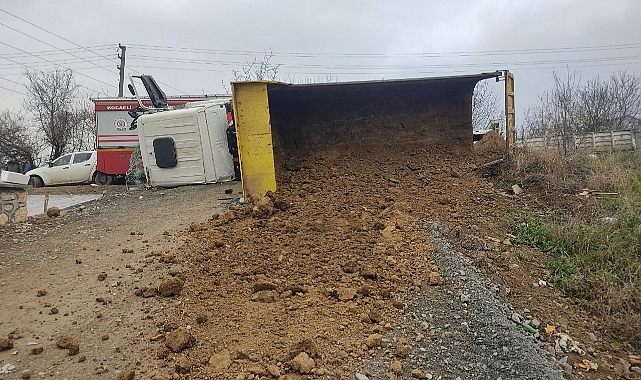 G.G. idaresindeki 41 AİP 739 plakalı toprak yüklü kamyon, Cumhuriyet Mahallesi Sevgi Yolu Caddesi'nde devrildi.İhbar üzerine olay yerine sağlık ve itfaiye ekipleri sevk edildi.İtfaiye ekipleri tarafından araçtan çıkarılan sürücü, ambulansla gölcük Necati Çelik Devlet Hastanesine kaldırıldı.