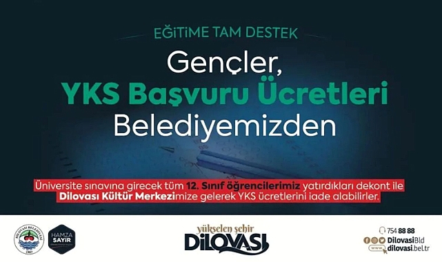 Belediyeden yapılan açıklama da; Üniversite sınavına girecek tüm Dilovalı 12. Sınıf öğrencilerinin yatırdıkları dekont ile Dilovası Belediyesi Kültür Merkezi’ne giderek yatırdıkları ücretleri belediyeden geri alabilecekleri belirtildi.