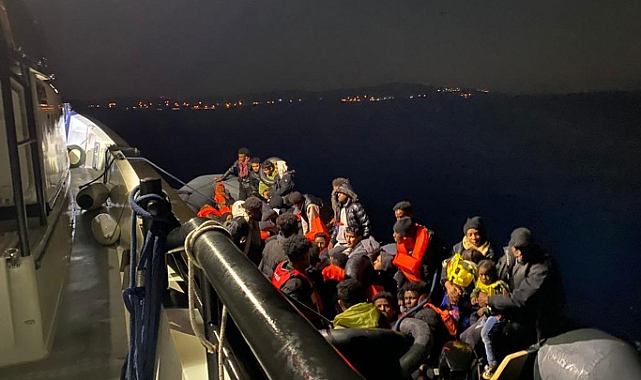 Çanakkale açıklarında Sahil Güvenlik ekipleri tarafından durdurulan lastik botlarda toplam 69 düzensiz göçmen yakalandı.