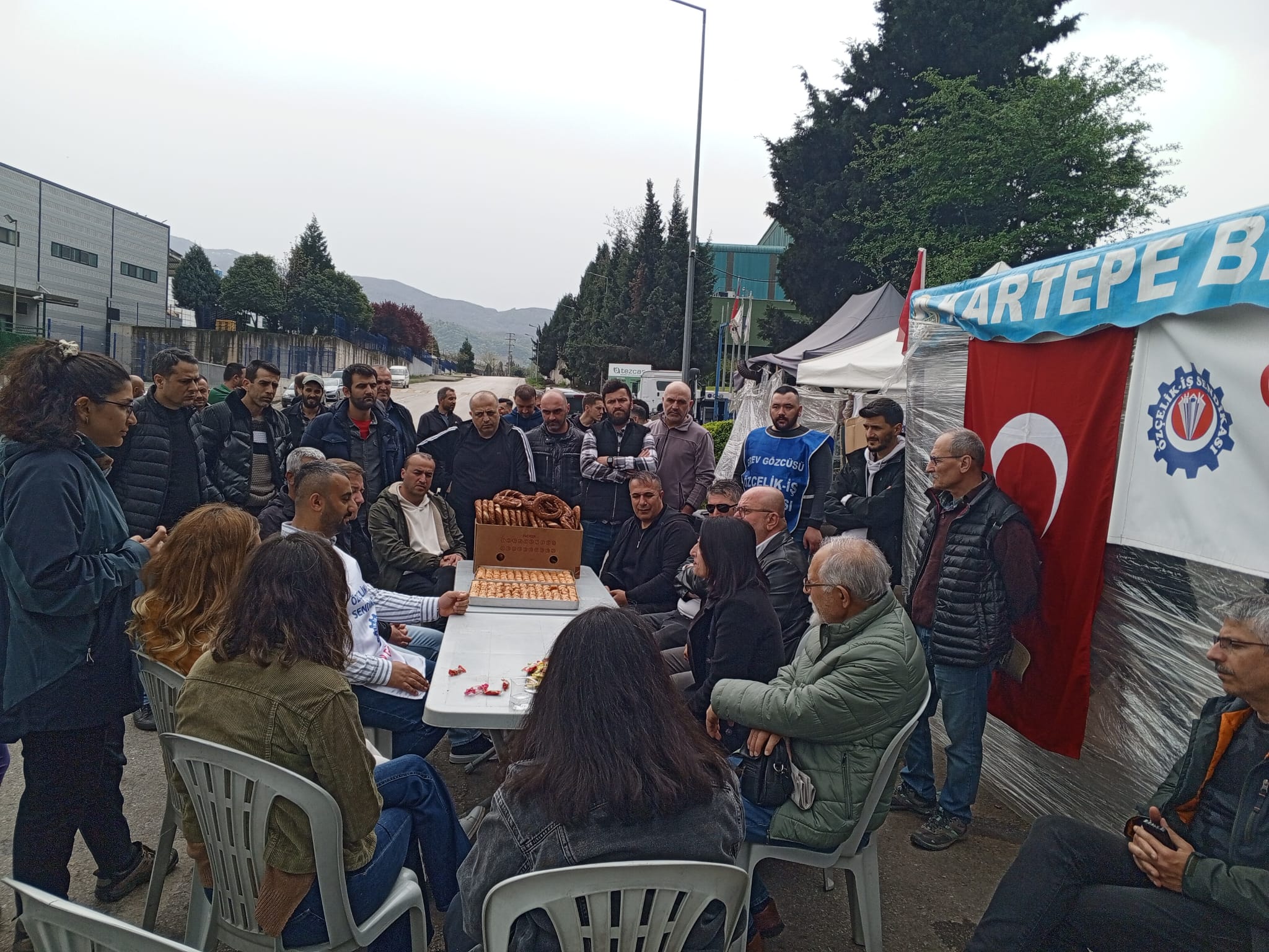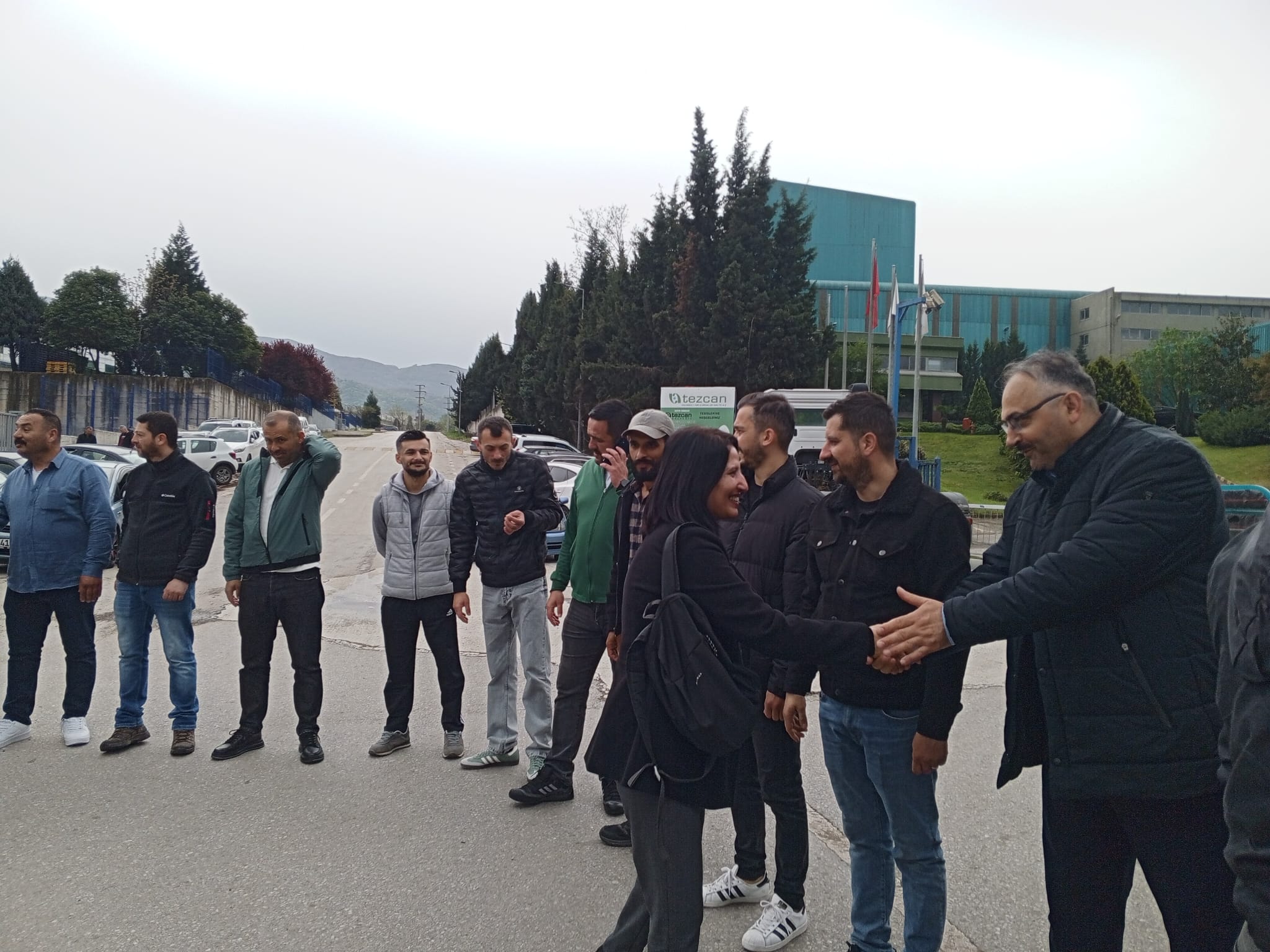 Emek Partisi Genel Başkan Yardımcı Arzu Erkan, Emek Partisi Kocaeli İl Başkanı İlhami Şahbaz ve beraberindeki heyet, ziyarette işçilerle bayramlaştı.Şahbaz ziyarette yaptığı konuşmada "Birleşerek kazanabiliriz" dedi.Birleşerek, yana yan gelerek kazanacağız diyen Şahbaz "Geleceğiniz için başlatmış olduğunuz bu yol hakikatan bayram kadar hayırlı, geleceğinizi kurmak geleceği örmek adına son derece önemli bir görevi yerine getiriyorsunuz. Sizin bu mücadeleniz sadece Tezcan Galvaniz işçilerinin mücadelesi değil Arslanbey Organize Sanayi Bölgesinde hak arama mücadelesinde olan işçiler başta olmak üzere tüm işçi sınıfımızın, tüm emekçilerin mücadelesidir" dedi.