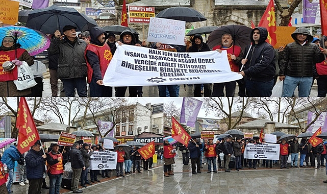 İlçe binası önünden Gebze Eski Çarşı Çeşme Önüne yürüyen partililer, "İnsanca bir yaşam istiyoruz", "Grev haktır yasaklanamaz" ve "Metal işçisi yalnız değildir" sloganları attı. Burada yapılan açıklamaya grevde olan MKB Rondo işçileri, TİP, Eğitim Sen, MMO ve Gebze İşçilerin Birliği Derneği de destek verdi. Burada konuşan EMEP Genel Başkan Yardımcısı Levent Tüzel, "Alanlarda, meydanlarda, fabrikalarda, emekçi semtlerinde, bütün hizmet alanlarında, sokaklarda olmak, sesi yükseltmek gerekiyor" dedi. "TÜİK GERÇEKLERİN ÇOK UZAĞINDA"Mecliste bütçe görüşmelerine ve ekonomik duruma dair konuşan EMEP Genel Başkan Yardımcısı Levent Tüzel, "Sıkıntıyı çeken, yaşam kavgası veren, açlıkla boğuşan, iş cinayetleri, kadın cinayetleri, çocuk cinayetleri ile ayakta durmaya çalışan bu ülkenin halkları, bu konularda ne düşünür ne talep eder... Bu konularda sözü, düşüncesi alınmıyor. Meclis’te bütçeyi konuşan ve oylayan partilerin temsilcileri, milletvekillerinin çoğunluğu büyük ölçüde işveren takımı, sermaye sınıfının siyasetçileri. İşçinin, emekçinin, esnafın, üreticinin, emeklinin halinden anlayacak durumda değiller. Öbür taraftan milyonlarca işçinin, ortalama ücreti olmuş asgari ücreti, sadece ve sadece 15 kişinin, o da çoğunluğu sermaye safında olan, sadece bir kaç tanesinin işçi olduğu, sadece milyonlarca işçiyi temsil ettiği bir komisyon karar verebilir mi? En son 17 bin 2 lira’da kalan asgari ücret, Temmuz ayında artırılmayan asgari ücret, şimdi iktidara kalırsa, Mehmet Şimşek ve Erdoğan’ın boğaz sıkma, IMF kararlarına kalırsa, Orta Vadeli Programına kalırsa, hedeflenen enflasyon oranında artırılacak. Onların bu hedeflenen enflasyon oyununun ne olduğunu biz çok iyi biliyoruz.TÜİK açıklıyor ama yaşamdaki gerçeklerin çok çok altında... Bilim insanları, akademisyenler açıklıyor çoktan yüzde yüzleri geçmiş durumda enflasyon. İşte şimdi metal işçilerine de patronlar, onların örgütü MESS, yüzde 40’ı dayatıyor. Yüzde 17 ile yüzde 25 arasında yapılacak bir asgari ücret artışı, yani 25 bin lirayı, 30 bin lirayı geçmeyecek bir asgari ücret artışı, değil açlık, değil yoksulluk, sefalet koşullarının çok çok altında bir rakamdır. İnsanca yaşayacağım diyen hiçbir kimse bu paralarla hayatını sürdürmesi mümkün değildir" diye konuştu. "PATRONLARIN VERGİSİNİ BİR KALEMDE SİLİYORLAR"
