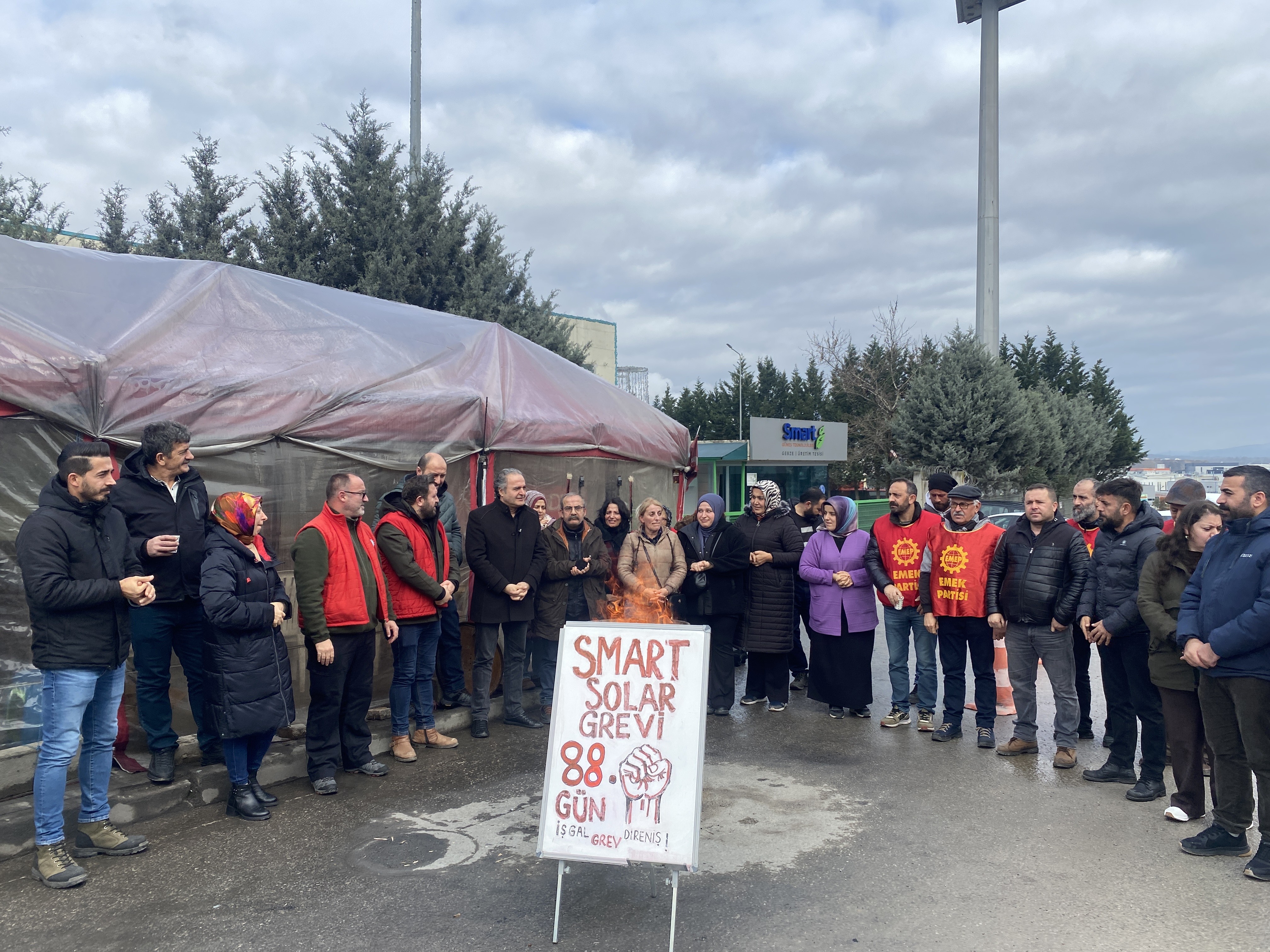 Emek Partisi İstanbul Milletvekili İskender Bayhan 88 gündür grevde olan Smart Solar işçilerini ziyaret etti. Birleşik Metal-İş Sendikası'nın örgütlü olduğu Smart Solar'da işverenin sefalet zammı dayatmasına karşı Grev devam ederken 44 işçi işten atıldı.