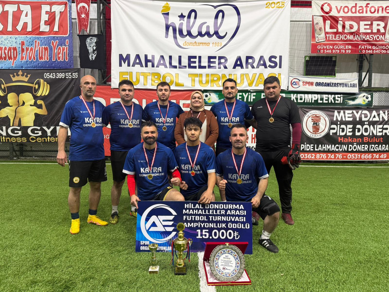 Haber: Hazım ÖzenirSamsun’un Terme ilçesinde AE Spor organizasyonu ve Hilal Dondurma sponsorluğunda düzenlenen 15 takımlı mahalleler arası futbol turnuvası, Fenk Mahallesi ile Yenimahalle arasında oynanan final karşılaşmasıyla tamamlandı. Yoğun taraftar desteğiyle gerçekleşen mücadelede Fenk Mahallesi üstün oyunuyla kupaya uzanırken maç sonrası kupa töreninde sponsorlar, muhtarlar ve organizasyon ekibi teşekkür konuşmaları yaptı.Terme’de 15 takımın katılımıyla düzenlenen Hilal Dondurma Mahalleler Arası Futbol Turnuvası, Fenk Mahallesi ile Yenimahalle’nin karşılaştığı final maçıyla tamamlandı. Final mücadelesi 07 Aralık Pazar günü saat 20.30’da Keyif Spor Kompleksi’nde başladı.Karşılaşma iki takım taraftarlarının karşılıklı marşlarıyla coşkulu bir atmosferde oynandı. Maça kontrollü başlayan ekiplerden Fenk Mahallesi, orta sahada kazanılan top sonrası takım kaptanı Ali Küçük’ün şık vuruşuyla öne geçti. Yenimahalle, arka direkte pozisyonu değerlendiren takımın golcüsü Mutlu Con ile beraberliği sağladı.Fenk Mahallesi İlk Yarıda Üstünlüğü Ele Geçirdi
