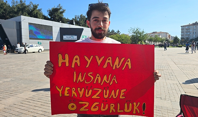 Gebze Kent Meydanı’nda dikkat çeken bir sessiz eylem gerçekleştirildi. Ümit Baş, hayvan hakları ve özgürlük temasıyla yaptığı bireysel eylemde, “İnsana, Hayvana , yeryüzüne özgürlük” mesajını verdi.