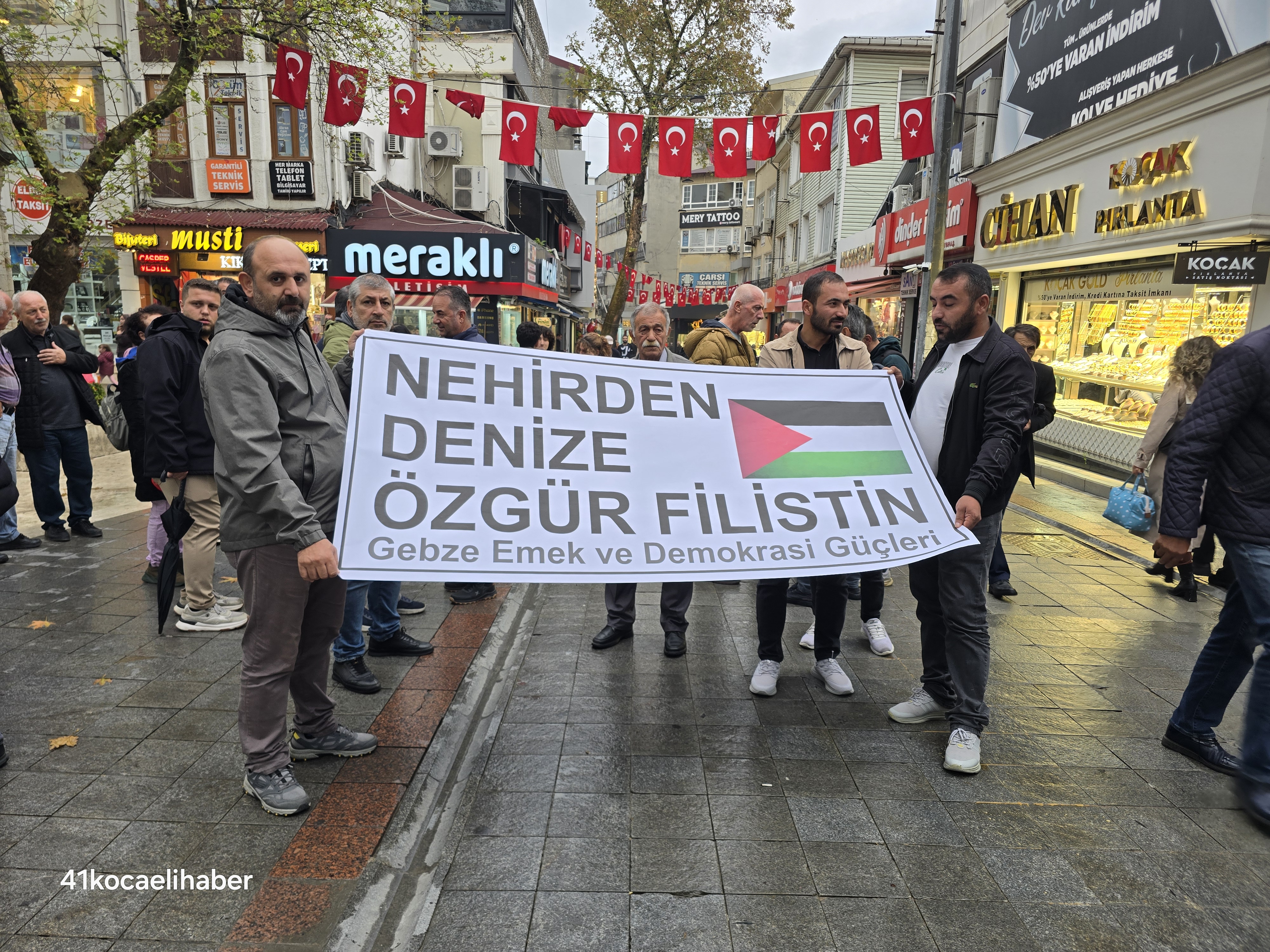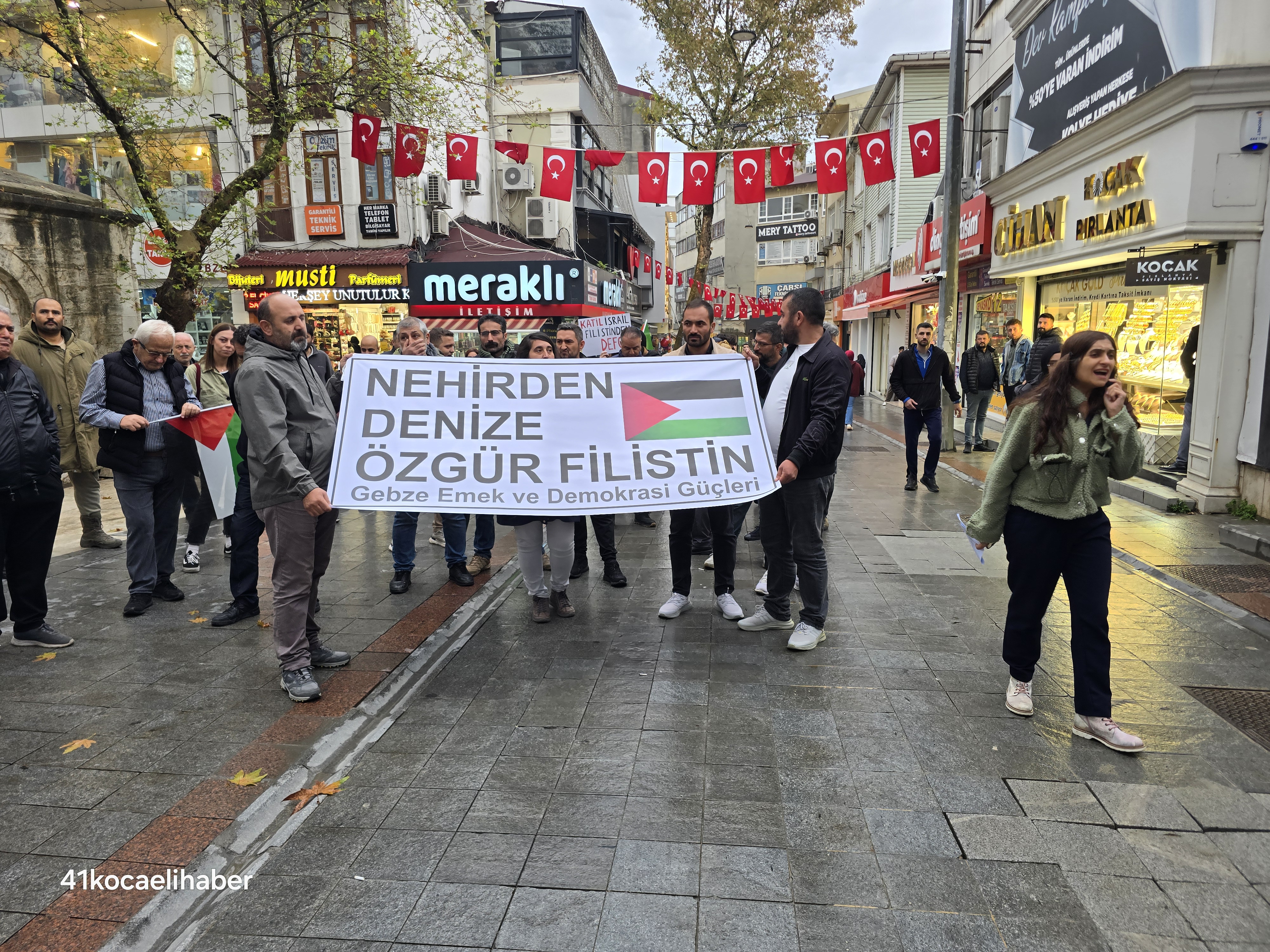 Gebze Emek ve Demokrasi Güçleri İsrail’in Gazze’deki soykırımına karşı bir yürüyüş ve basın açıklaması gerçekleştirdi. Gebze Eskiçarşı Tarihi İbrahim Paşa Çeşmesi önünde bir araya gelen Gebze Emek ve Demokrasi Güçleri sloganlar eşliğinde Gebze Kent Meydanı’na kadar yürüyüş yaptı.