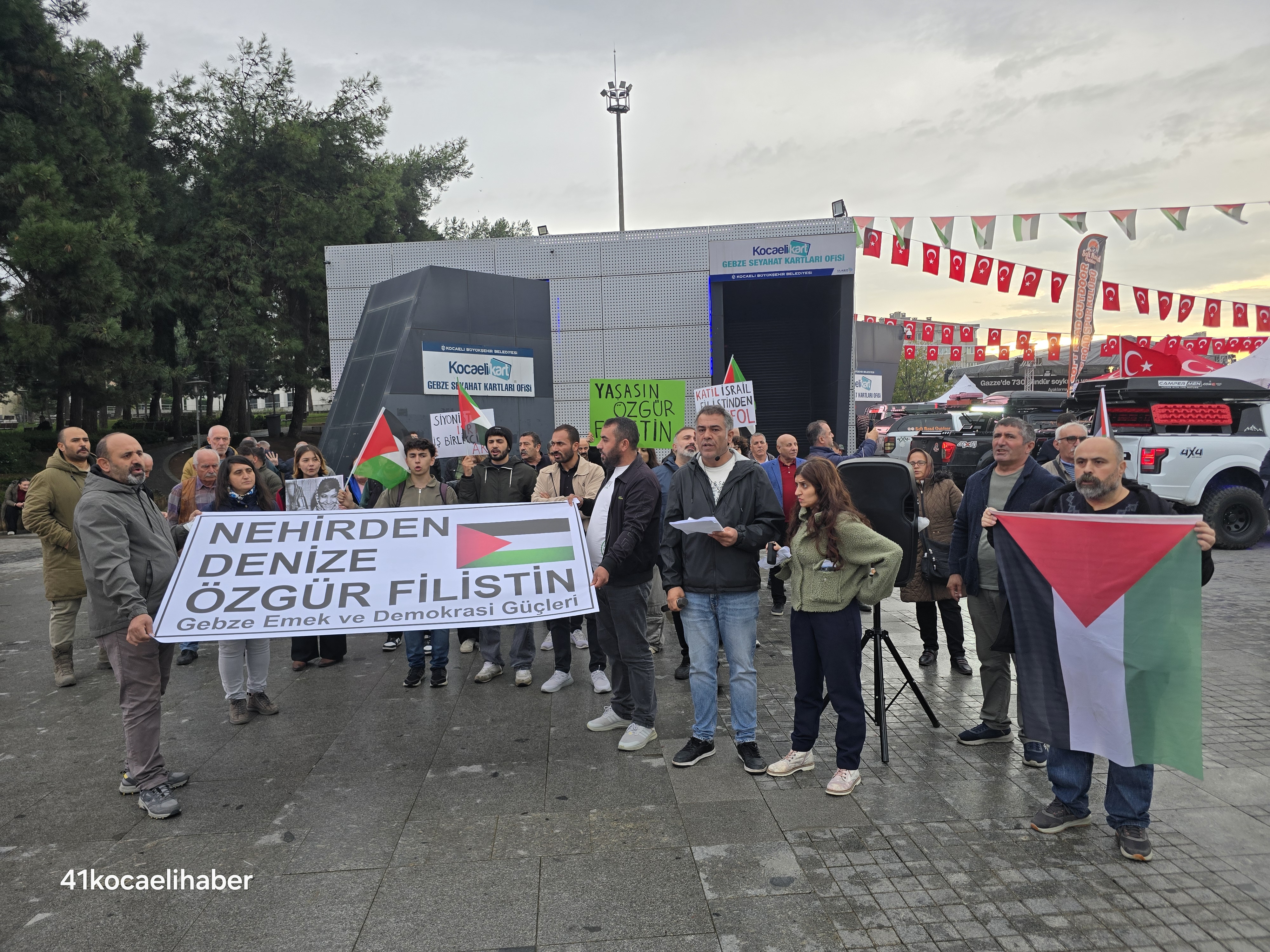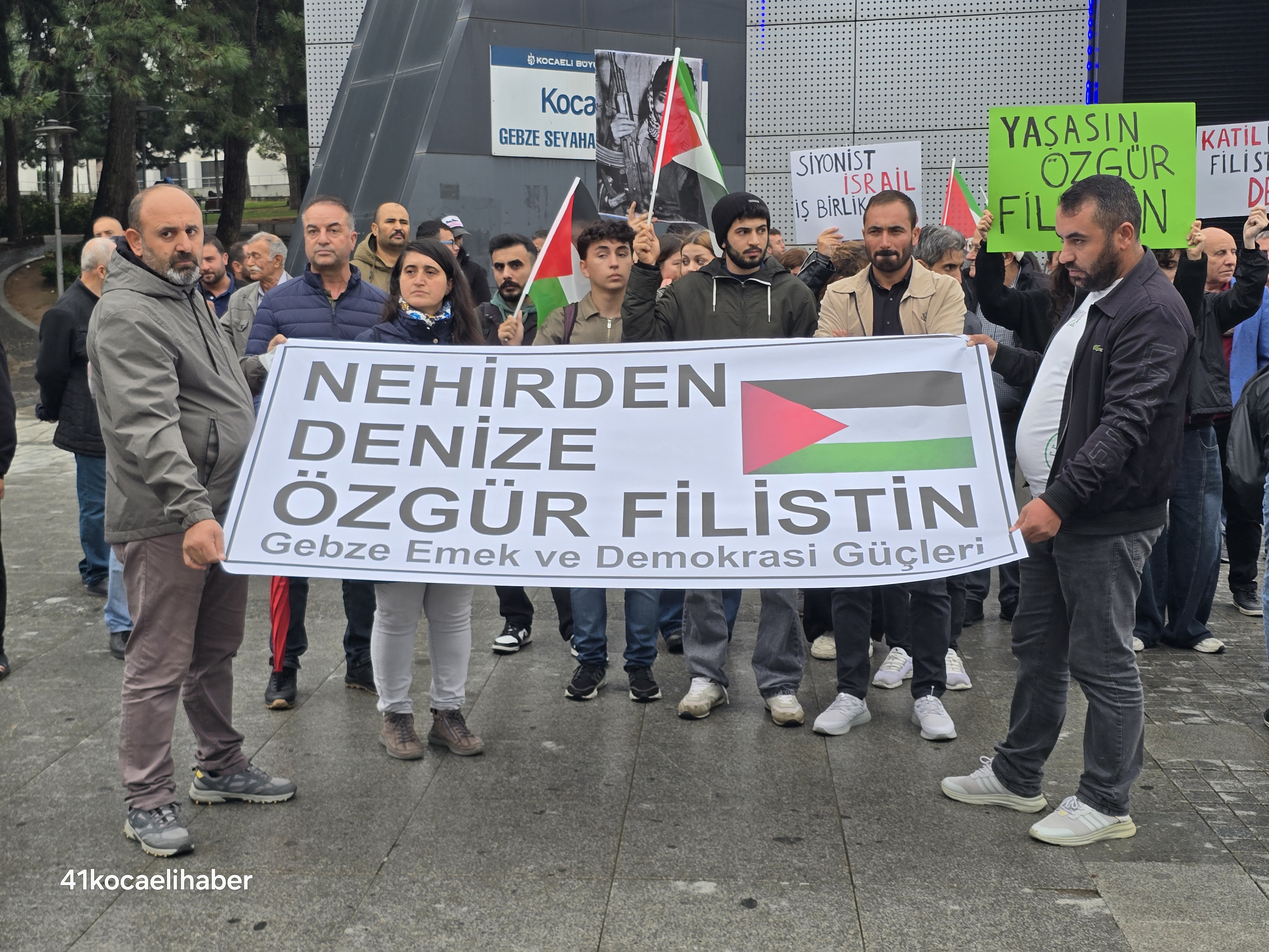 Gebze Emek ve Demokrasi Güçleri olarak iktidara sesleniyoruz: Hamasi nutukları artık bırakın. Gün somut adımlar atma Netanyahu hükümeti ile diplomatik, ticari ve askeri ilişkileri derhal keserek Filistin halkının yanında olma günüdür. Soykırımcı işgal devletine petrol akıtan, silah taşıyan Filistin halkına yapılan soykırıma destek olan tüm ortaklıklarınızı derhal sonlandırın. İsrail’i koruyan Kürecik Radar Üssü derhal kapatılmalı, Türkiye’den Nato’dan çıkmalıdır. Emperyalizmin ve Siyonizmin kanlı planları, halkların birleşik mücadelesi karşısında mutlaka yenilecektir. Biz Emek ve Demokrasi Güçleri olarak, emeğimiz üzerinden kurulan sömürü düzeninin İsrail’in savaş politikalarına da hizmet ettiğini görüyor ve buna karşı mücadelemizi büyütme çağrısı yapıyoruz.