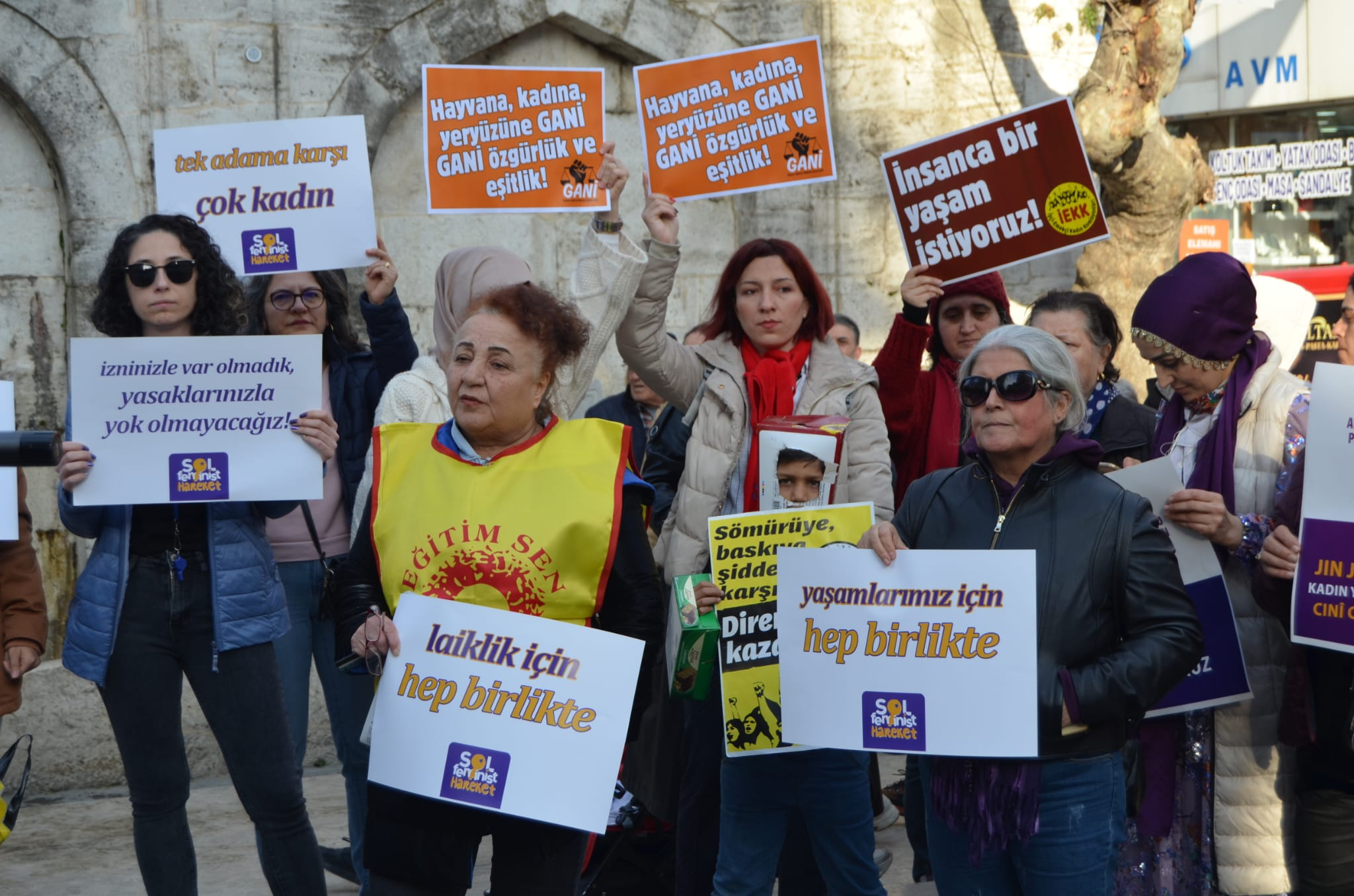 Bugün kadınlar tüm zorluklara karşı, EŞİT, ÖZGÜR, ŞİDDETSİZ bir yaşam için her yerde direniyor. Bölgesel kayyıma karşı, Antep’te ucuz iş gücüne, Temel Conta’da, Tkıs’da, belediyelerde insanca yaşamak ve güvenceli çalışmak için, As Kaynak’ta sendika hakkına sahip çıktığı için direniyor.