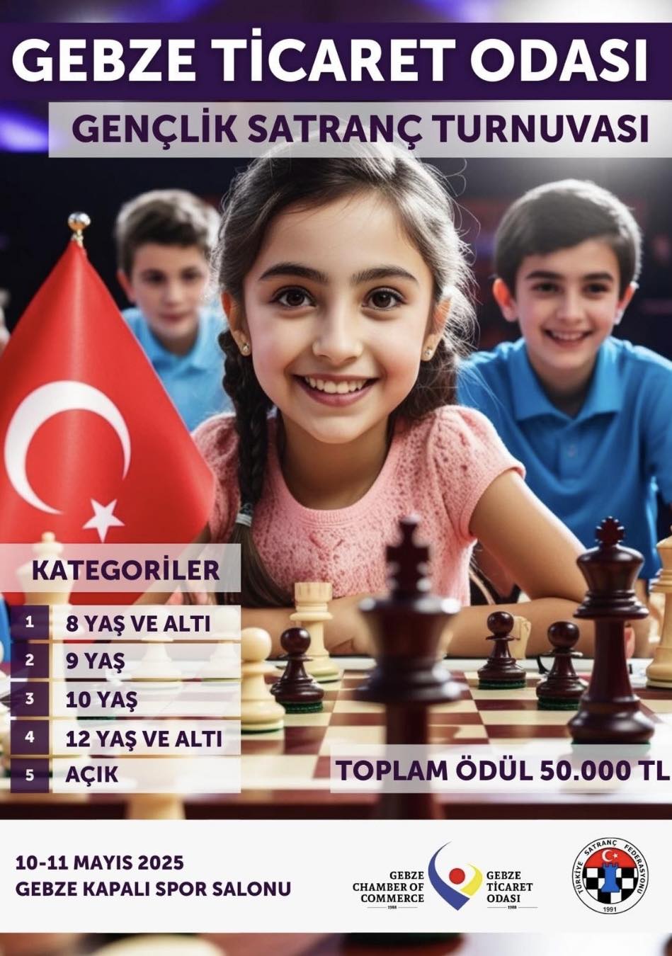 10-11 Mayıs 2025 tarihlerinde Gebze Kapalı Spor Salonu'nda gerçekleşecek olan bu büyük organizasyon, Türkiye Satranç Federasyonu Kocaeli İl Temsilciliği ile birlikte organize ediliyor. Turnuvaya, farklı yaş gruplarından ve Açık kategoriden katılım sağlanabilecek. İşte turnuvada yer alacak kategoriler: