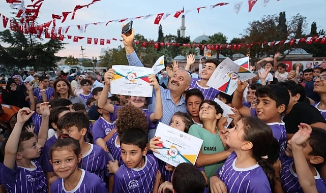 Gebze Belediyesi’nin düzenlediği Yaz Okulları kapanış programı Belediye Başkanı Zinnur Büyükgöz’ün ev sahipliğinde gerçekleştirildi. Yaz okulu öğrencilerinin ve Gebzelilerin yoğun ilgi gösterdiği programda öğrencilere sertifikaları takdim edildi. 30 farklı branşta 10 bin öğrencinin eğitim gördüğü Gebze Belediyesi Yaz Okulları kapanış programında bir selamlama konuşması gerçekleştiren Başkan Büyükgöz, “Bugün burada mutluluğu tarif et deseler nasıl olur ancak ve ancak geleceğimiz dediğimiz bizim canlarımız dediğimiz evlatlarımızla torunlarımızla bir arada olup onların yarınlara dönük umutlarını görmekle olur.
