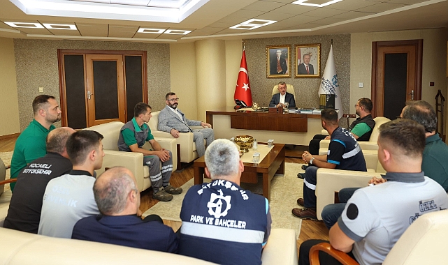 Başkanlık makamında işçi temsilcilerini ağırlayan Başkan Büyükakın, alınan kararın Büyükşehir ve çalışanlar ile aileleri için hayırlı olmasını diledi. Geçici işçileri daimi kadroya almanın mutluluğunu yaşadıklarını ifade eden Başkan Büyükakın, Büyükşehir personelinin özveri ile çalışarak kentin geleceğine katkı sunduğunu vurguladı. Görüşmede Genel Sekreter Yardımcıları Sadık Uysal ve Hasan Aydınlık da hazır bulundu.