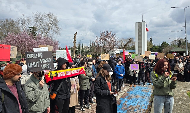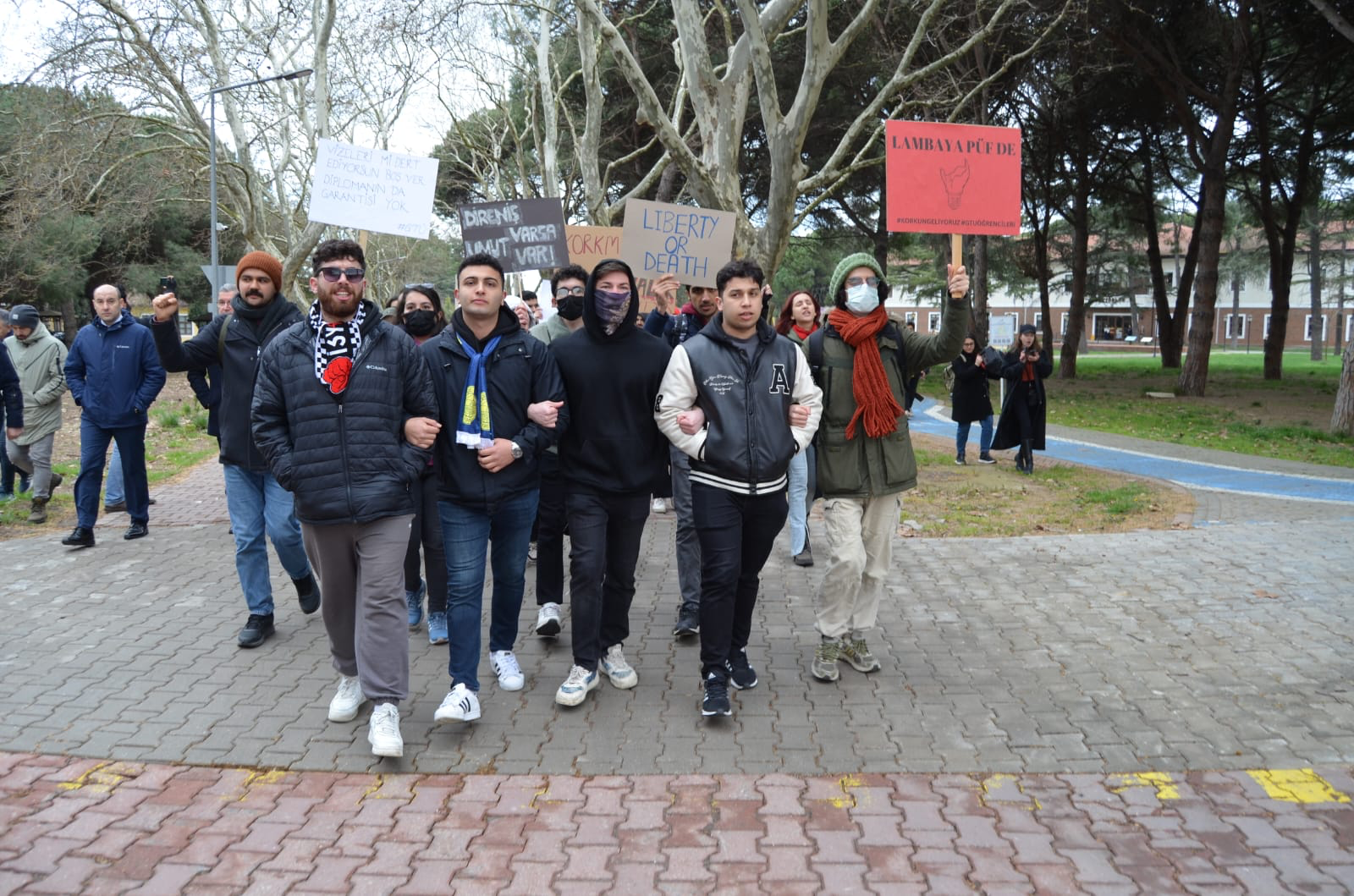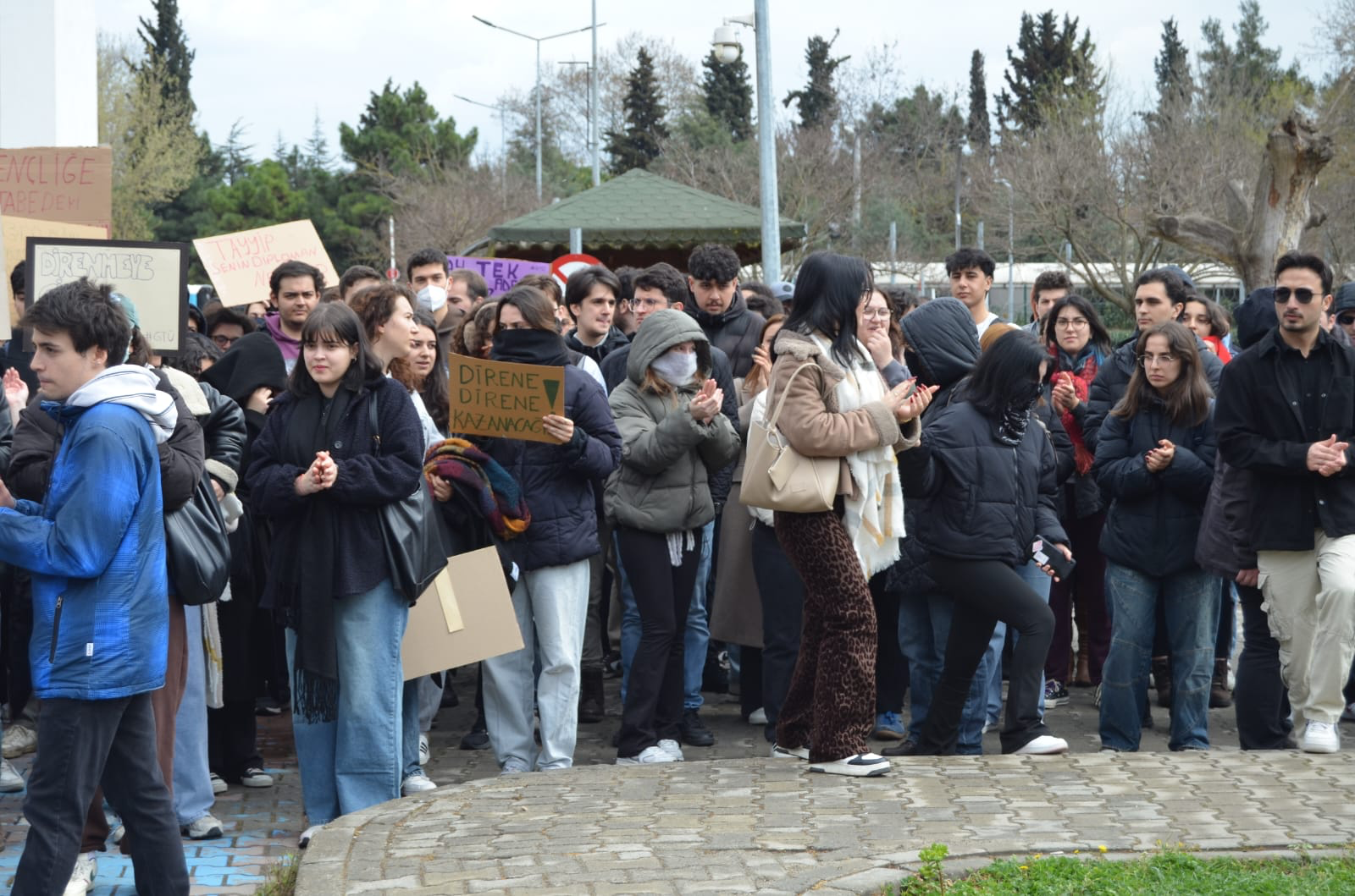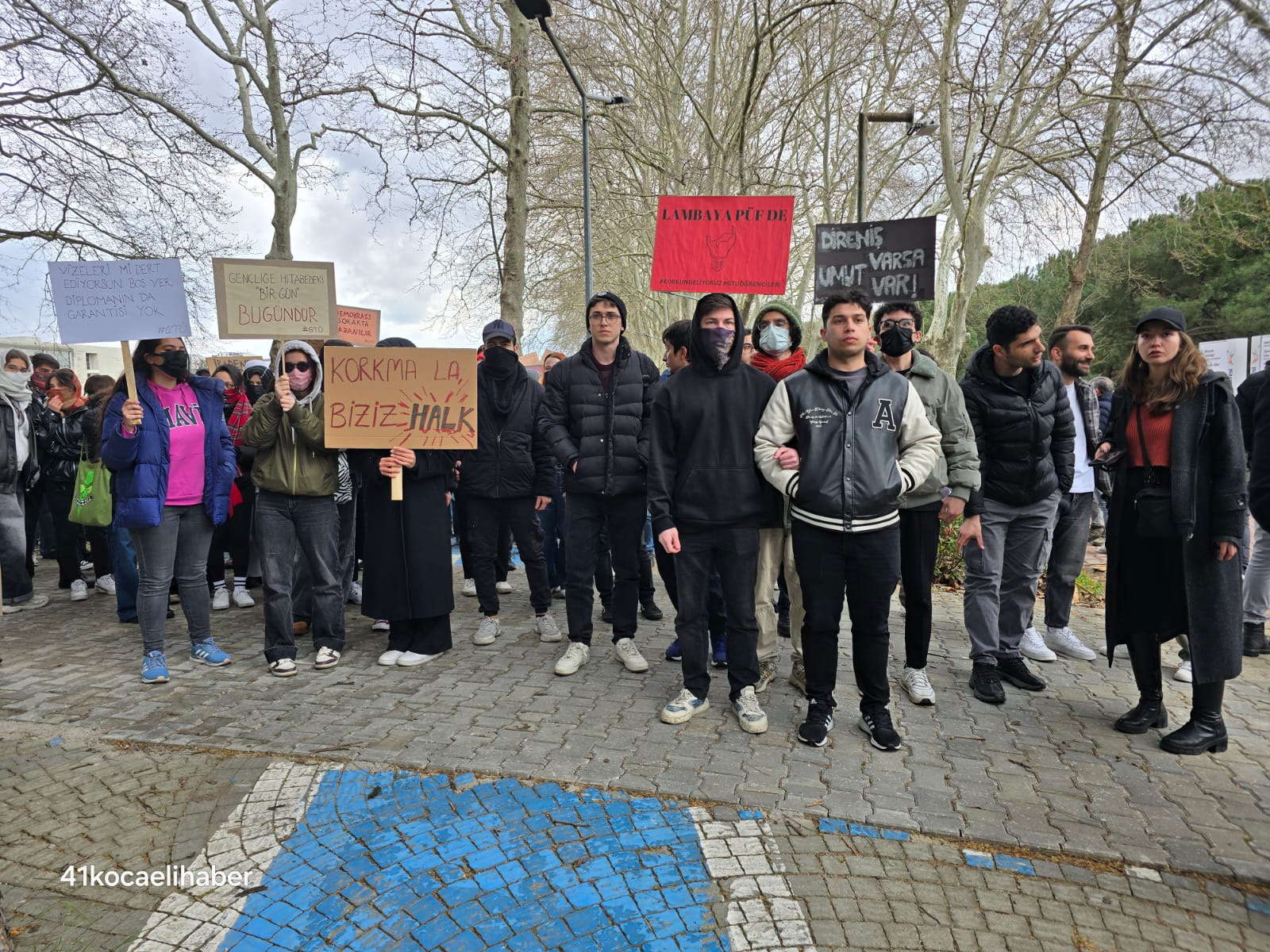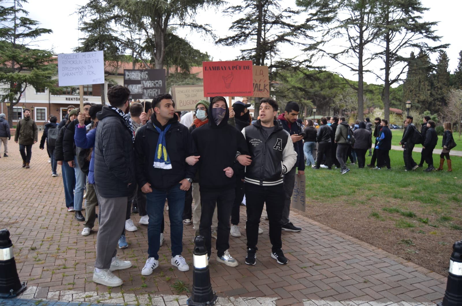 Rektörlük önünde toplanan öğrenciler, ana kapıya kadar sloganlarla yürüdü. yürüyüş sonunda yapılan basın açıklamasında, "Basına, kamuoyuna ve sıra arkadaşlarımıza...