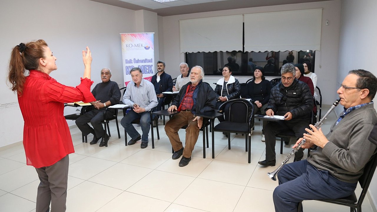 Müzik branşı konusunda oldukça geniş alt yapıya ve alanında uzman eğitmenlere sahip olan KO-MEK, Halk Eğitim Merkezi ile ortak yaptığı çalışmalarla da vatandaşa eğitim vermeye devam ediyor. kandıra KO-MEK kurs merkezinde açılan Türk Müziği Koro Çalışması branşında eğitim alan kursiyerler bu günlerde oldukça hummalı bir şekilde çalışmalarını sürdürüyor. 30 kişilik koro çalışmasıyla klarnet eşliğinde sevilen şarkıları seslendiren kursiyerler KO-MEK’in sağlamış olduğu imkânlardan oldukça memnun.