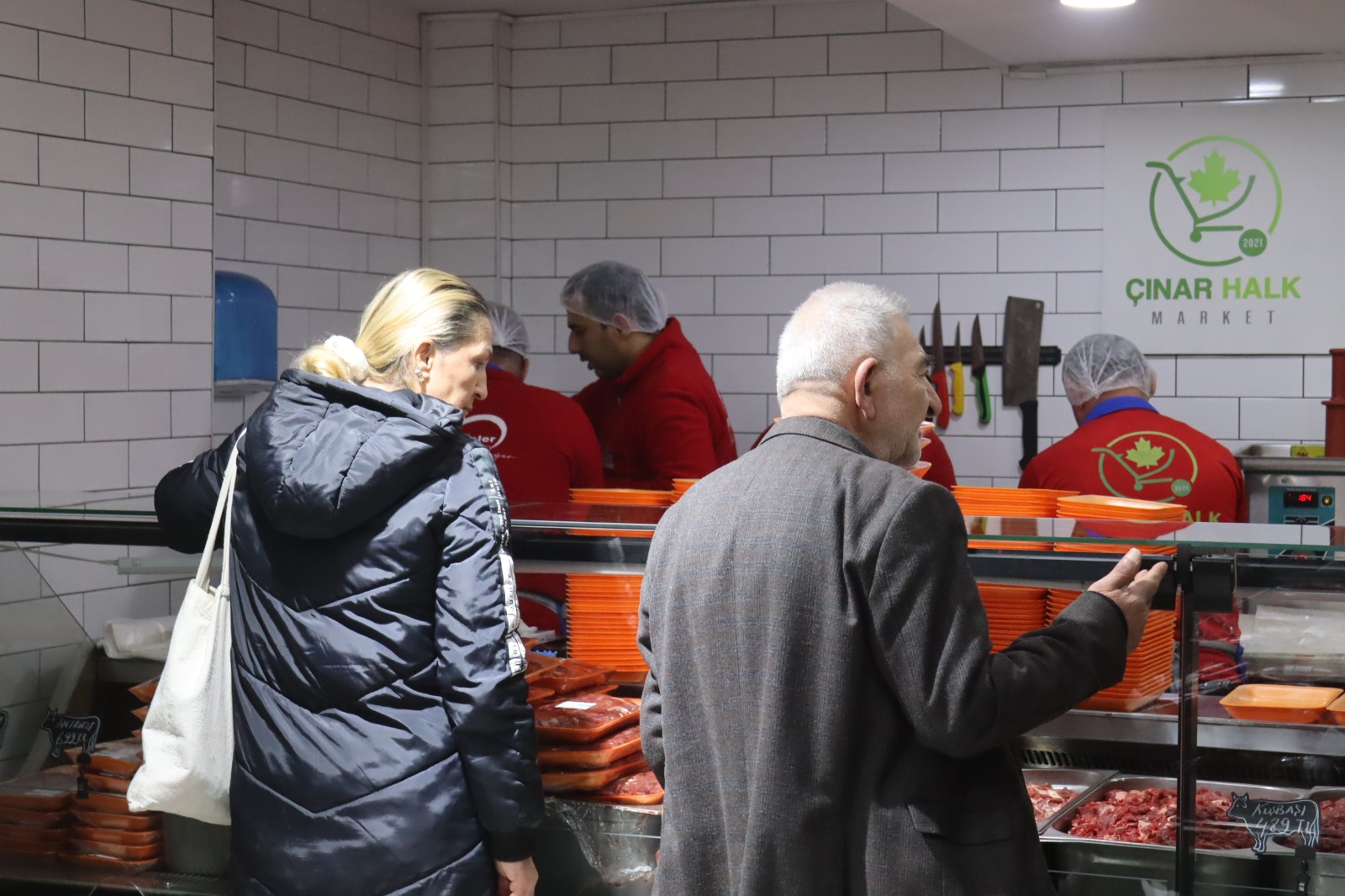 İzmit Belediyesinin, vatandaşların uygun ve kaliteli et tüketebilmeleri adına hayata geçirdiği Halk Et satışları bugün itibarıyla Çınar Halk Market’te başladı. Sabah saatlerinden itibaren uzun kuyrukların oluştuğu Halk Et noktasında vatandaşlar, piyasanın altında fiyatlarla et alışveriş yapıyor. Kıyma 449, kuşbaşı 489, kontrfile 599, antrikot 699, bonfile 799, dana sucuk 449, manda sucuğu ise 499 Lira olarak satışa sunuldu. TÜM KOCAELİ HALKINA HİZMET VERİLİYORHalk Market, 10.00 18.00 saatleri arasında hizmet verecek. Alışverişler yalnızca Çınar Kart ile yapılabilecek ve her aile haftada bir kez alışveriş yapabilecek. Kişi başına 2 kilo kıyma, 2 kilo kuşbaşı, 1 kilo sucuk ve 1 kilo seçmeli et (kontrfile, antrikot veya bonfile) alınabiliyor. Et satış noktasında ticari amaçlı alım yapılmasını önlemek için parça parça satış yapılmıyor. Projeye İzmit’in gönüllü kasapları da destek vererek üretim ve dağıtım sürecine katkı sağlıyor. Halk Et satışları tüm Kocaeli halkına açık; sadece İzmitlilerle sınırlı değil.
