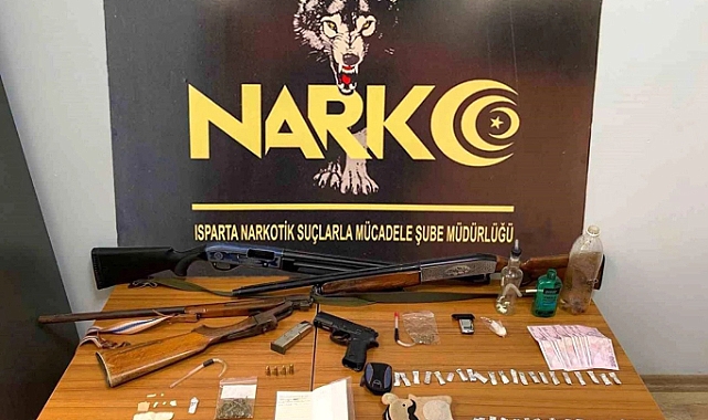 Isparta İl Emniyet Müdürlüğü Narkotik Suçlarla Mücadele Şube Müdürlüğü görevlilerince Isparta'nın Şarkikaraağaç ilçesinde düzenlenen operasyonlarda, 7 şüpheli hakkında "uyuşturucu veya uyarıcı madde imal ve ticareti" suçundan, 13 şüpheli hakkında da "uyuşturucu veya uyarıcı madde kullanmak" suçundan olmak üzere toplam 20 şüpheli hakkında adli işlem yapıldı.Gözaltına alınan şüpheli şahıslardan 4'ü sevk edildiği adli makamlar tarafından "uyuşturucu veya uyarıcı madde imal ve ticareti" suçundan tutuklandı.Operasyonlarda 8 ikamet, 1 iş yeri, 6 araç ve şüpheli şahısların üstlerinde yapılan aramalarda; 46 parça halinde satışa hazır 33,14 gram uyarıcı nitelikli madde, 2 parça halinde satışa hazır 5,28 gram halüsinojen nitelikli madde, 11 parça halinde 149 kullanımlık kağıda emdirilmiş halüsinojen nitelikli madde, 1 adet uyarıcı nitelikli hap, 1 adet sentetik ecza, 1 adet hassas terazi, 3 adet tüfek, 1 adet tabanca, 14 adet fişek, 7 adet sahte 200 TL banknot ele geçirildi. (İLKHA)