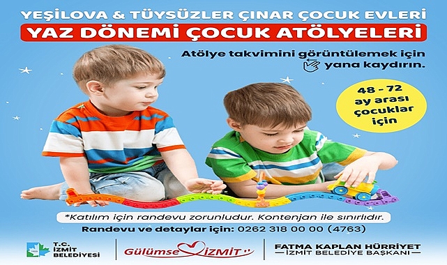 İzmit Belediyesi; okul öncesi eğitimden yararlanmayan, sosyalleşerek öğrenme ihtiyacı bulunan, ebeveynlerin işi çıktığında çocuklarını güvenle emanet edebilecekleri Çocuk Atölyelerine Temmuz ayı boyunca devam edecek