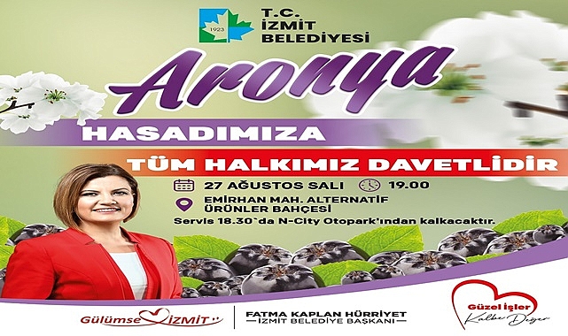 İzmit Belediyesinin Emirhan Mahallesi’nde bulunan Alternatif Ürünler Bahçesi, aronya hasadına hazırlanıyor. Zengin içeriği ve insan sağlığına katkısı nedeniyle "süper meyve" olarak adlandırılan aronyaların hasadı, 27 Ağustos Salı günü saat 19.00’da gerçekleştirilecek.TÜM İZMİT HALKI DAVETLİSağlığa olan faydalarıyla dikkat çeken süper meyve aronyanın hasadı bu yıl da İzmitlilerin katılımıyla yapılacak. Vatandaşlar için saat 18.30’da Ncity AVM otoparkından araç kalkacak. Aronya hasadına tüm İzmit halkı davetli.