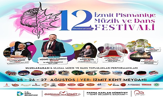 İzmit Belediyesi ve ilgili kurum ve kuruluşların ortaklığında bu yıl 12’ncisi düzenlenecek olan Uluslararası İzmit Pişmaniye, Müzik ve Dans Festivali 25-26-27 Ağustos tarihlerinde gerçekleşecek. İzmit Kent Meydanı başta olmak üzere kentin birçok noktasında birbirinden renkli etkinlik, söyleşi, yarışma, gösteri ve konserlerin düzenleneceği festivale birçok ünlü isim katılım sağlayacak.