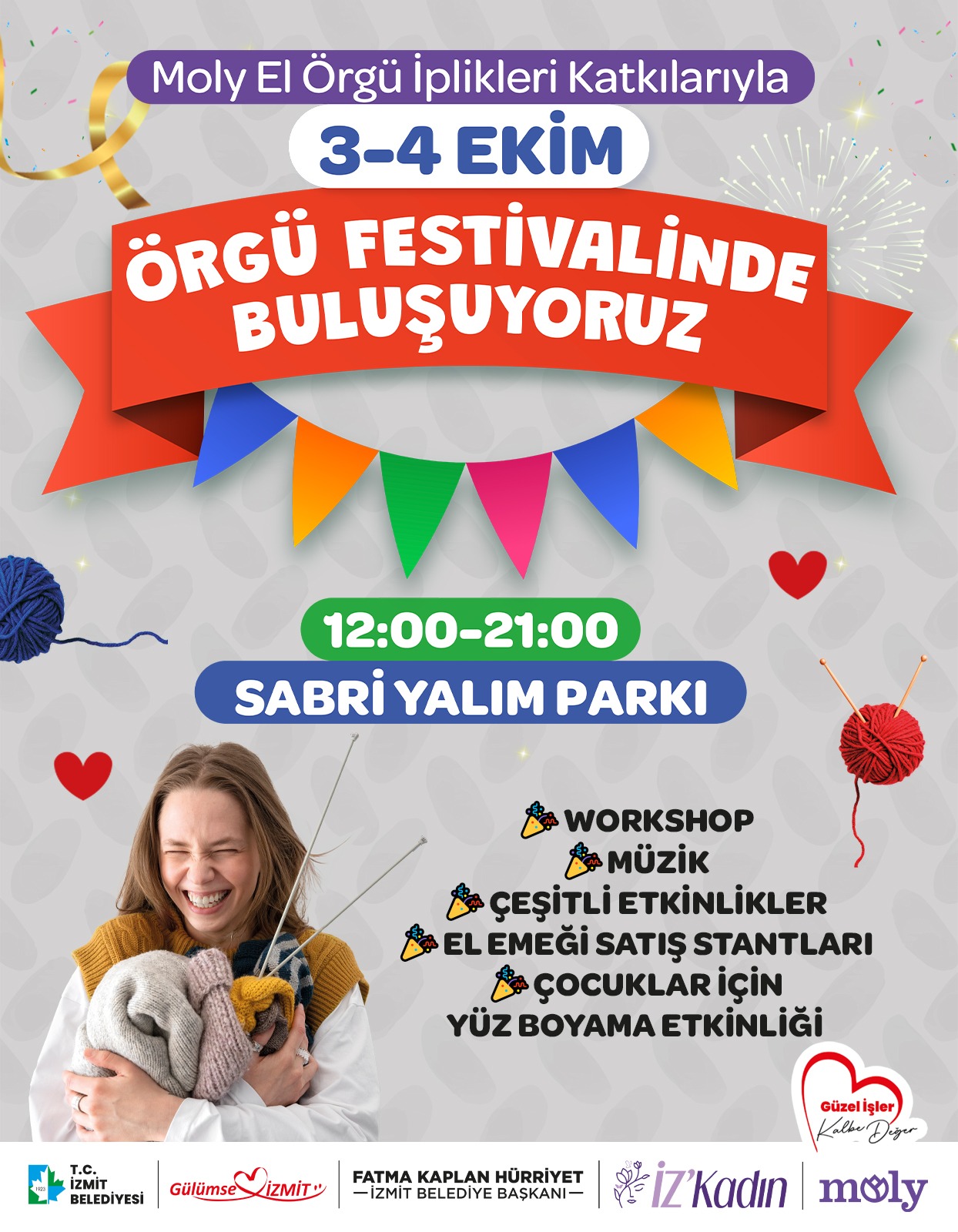 İzmit Belediyesi, el emeğini ve üretimin gücünü ön plana çıkarmak amacıyla yeni bir festivale imza atıyor. 3-4 Ekim tarihlerinde Sabri Yalım Parkı’nda gerçekleşecek Örgü Festivali, vatandaşlara hem keyifli vakit geçirme hem de yerel üreticilere destek olma imkânı sunacak. EL EMEKLERİ VATANDAŞIN BEĞENİSİNE SUNULACAKFestival, iki gün boyunca 12.00 – 21.00 saatleri arasında ziyaretçilerini ağırlayacak. Rengarenk örgü stantları, el emeğiyle üretilmiş özel ürünler, yaratıcı ücretsiz atölyeler ve sürpriz etkinlikler festival alanında yer alacak. Kadın girişimciler, ürettikleri el emeği işlerini sergileyerek vatandaşların beğenisine sunacak. TÜM VATANDAŞLAR DAVETLİMoly El Örgü İplikleri’nin katkılarıyla daha da zenginleşen festivalde, katılımcılar iplik dünyasının renkli seçeneklerini yakından tanıma ve örgüye dair ilham verici fikirlerle buluşma fırsatı bulacak. Örgü Festivali, yalnızca alışveriş değil; paylaşım, dayanışma ve birlikte üretme kültürünü yaşatmayı hedefliyor. İzmit Belediyesi, tüm vatandaşları aileleriyle birlikte bu keyifli buluşmaya davet ederek festival coşkusuna ortak olmaya çağırıyor.