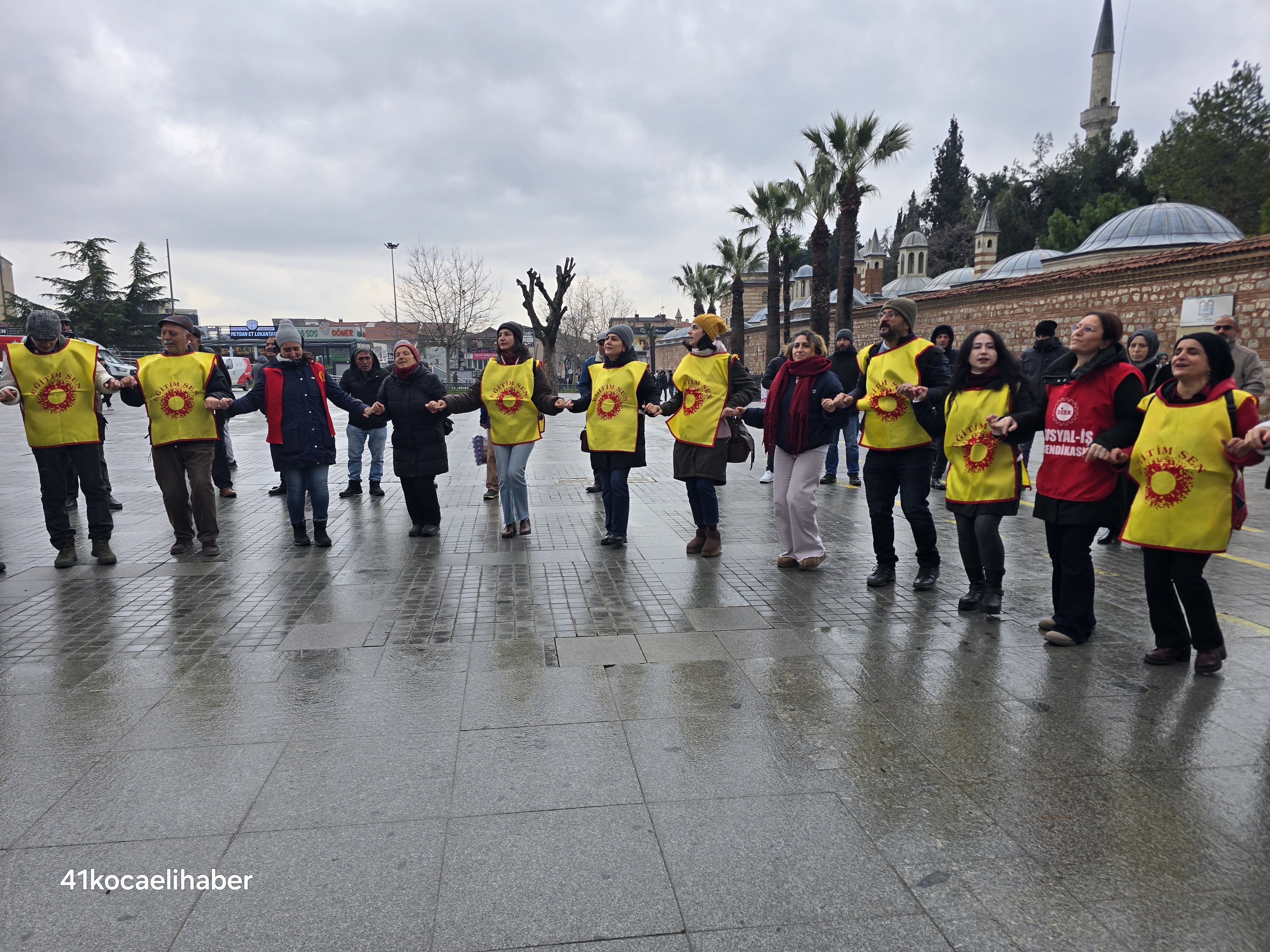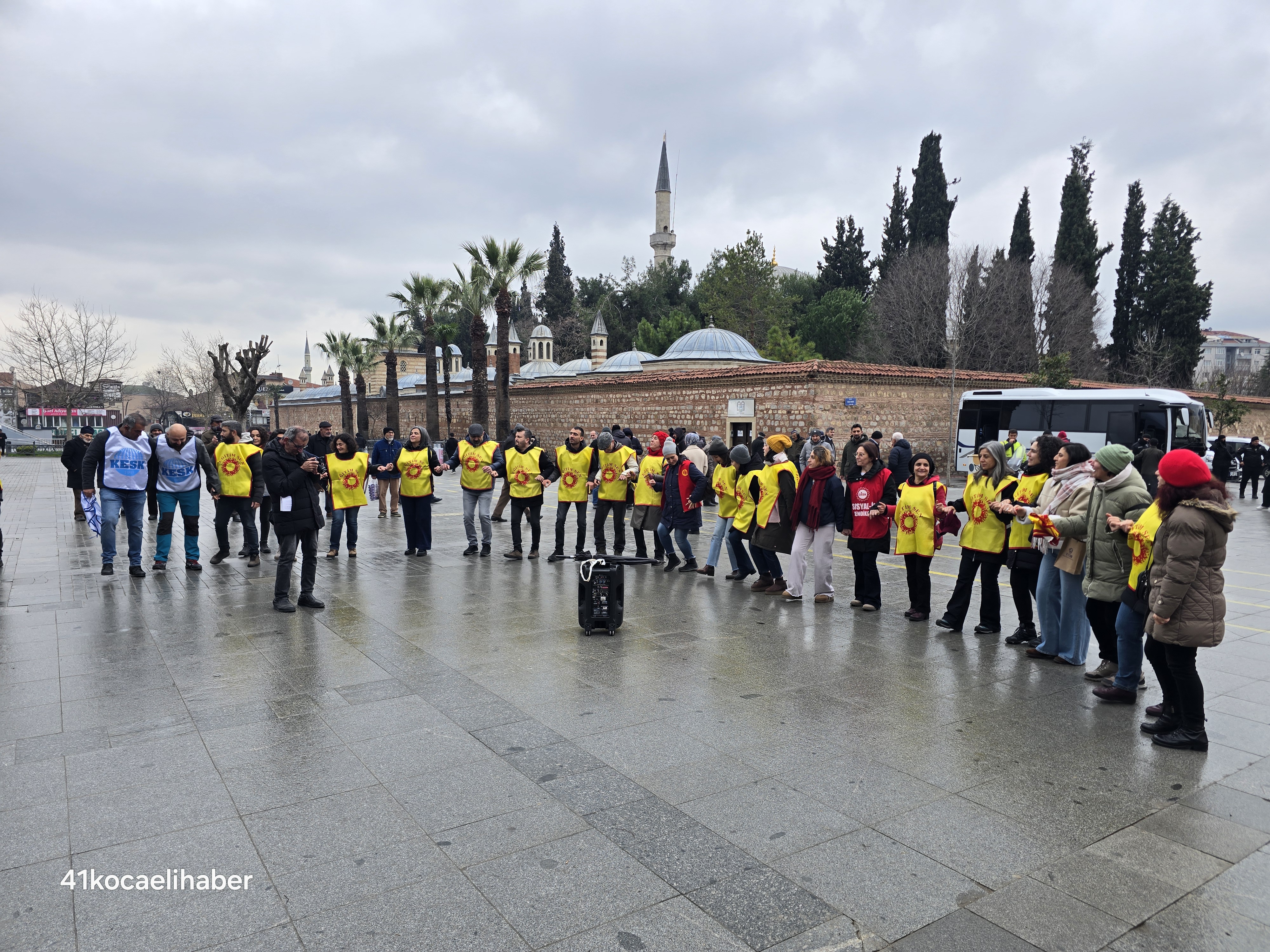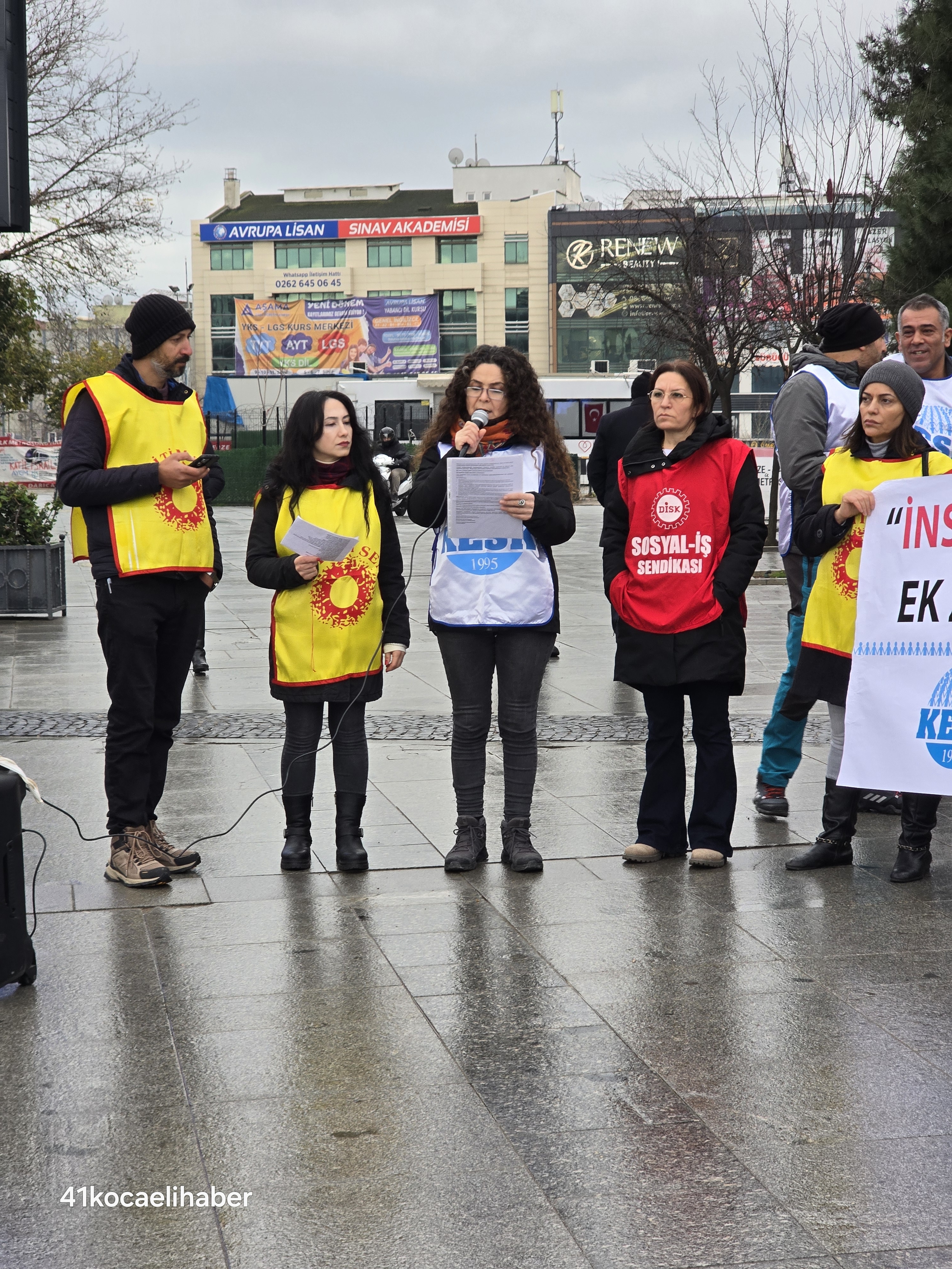 Gebze Tarihi Çeşme önünde toplanan sendika üyeleri, sloganlar eşliğinde Gebze Kent Meydanı’na yürüdü. Yürüyüşün ardından basın açıklamasını Eğitim-Sen Kocaeli 2 Nolu Şubesi Kadın Sekreteri Hatice Oral yaptı.
