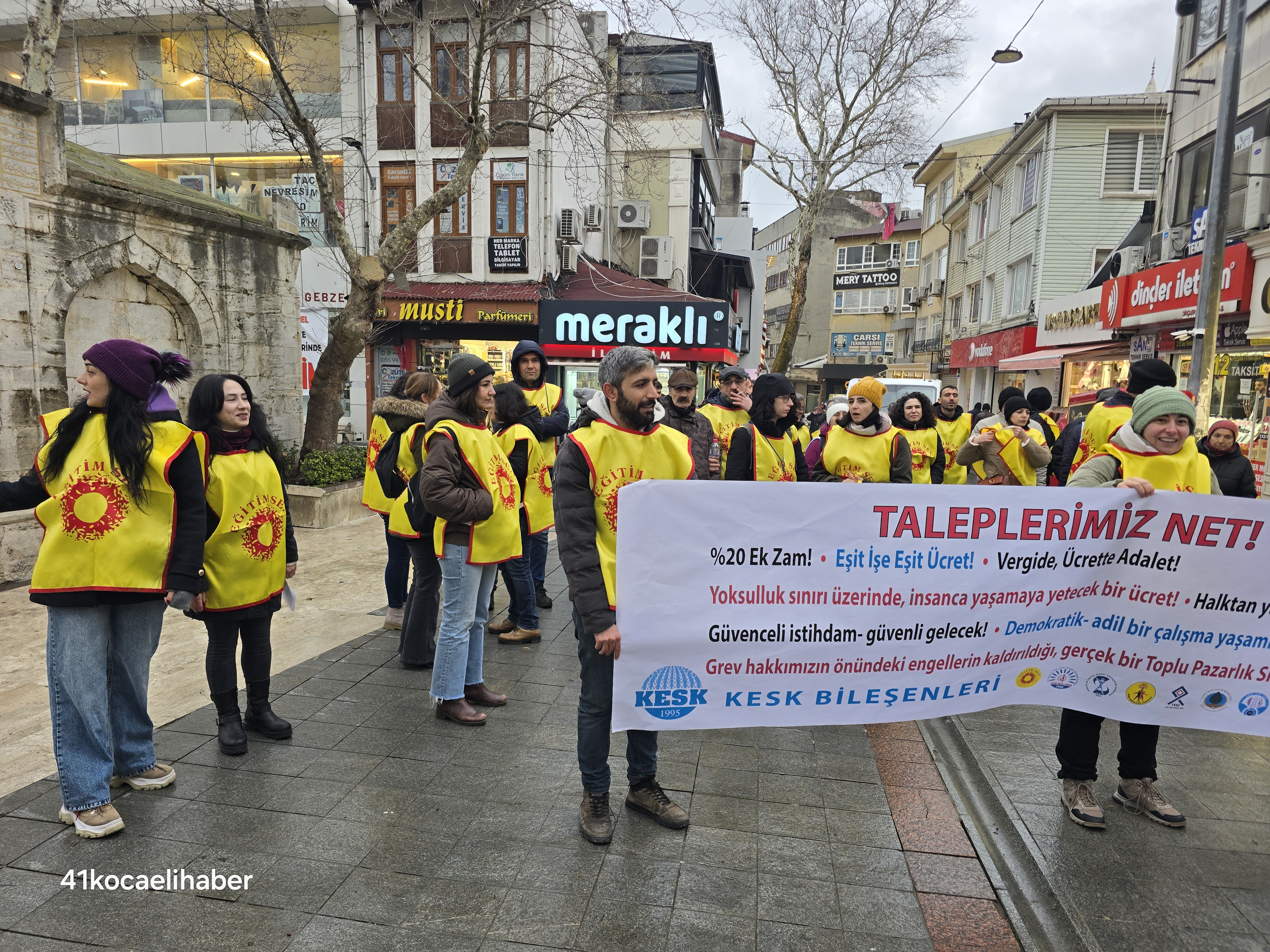 normlarla uyumlu hale getirilmesini istiyoruz. En geç Haziran ayı sonunda gerçek bir toplu pazarlık masası kurulmasını istiyoruz. En düşük kamu emekçisi maaşının yoksulluk sınırı üzerine çıkarılmasını, kira, kreş ve yol desteği istiyoruz. Biliyoruz ki; sadece bizler değil, toplumun ezici çoğunluğunu oluşturan tüm emekçi sınıflar, sefalete itilenler, ötekileştirilenler hepimize yoksulluk, güvencesizlik ve baskıdan başka bir